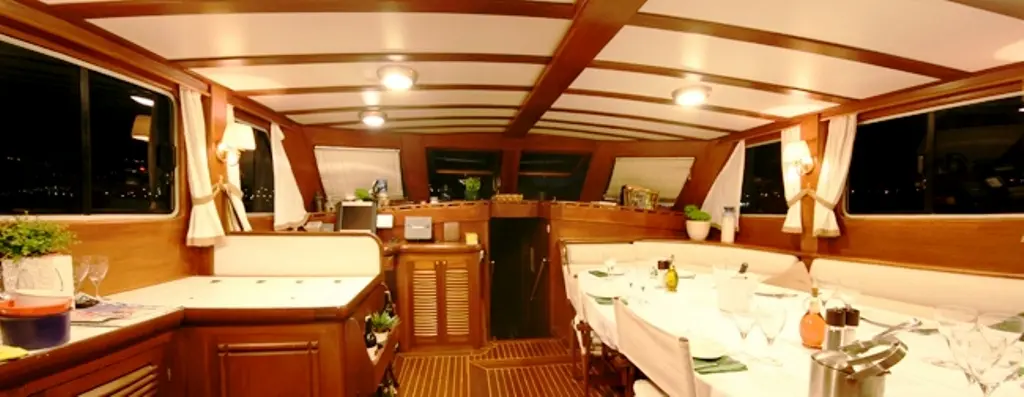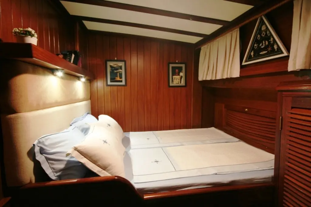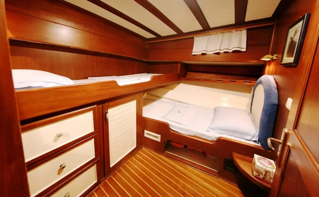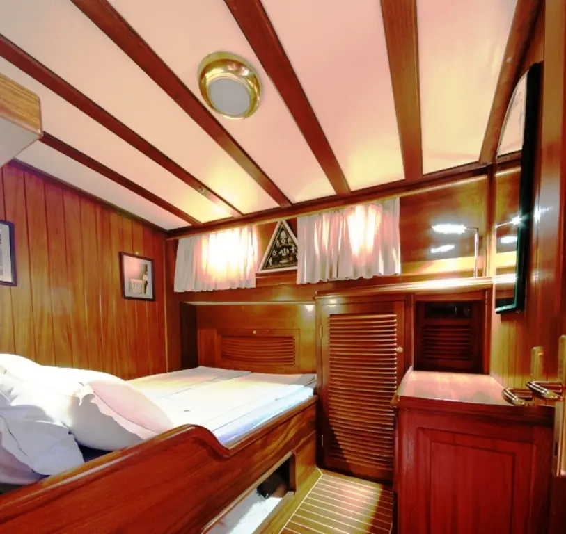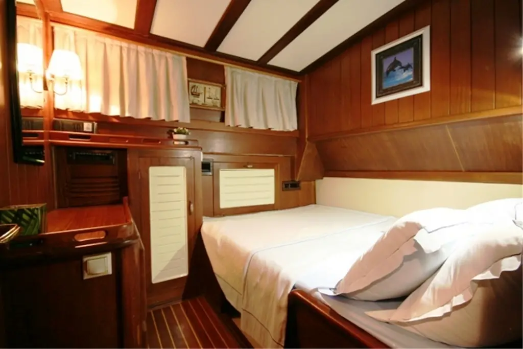 The Gulet Kaptan Sevket provides spacious, air-conditioned cabins, perfect for accommodating families and larger groups. Each cabin offers a cozy retreat with wood-paneled interiors, ensuring a traditional sailing ambiance with all the comforts of home.