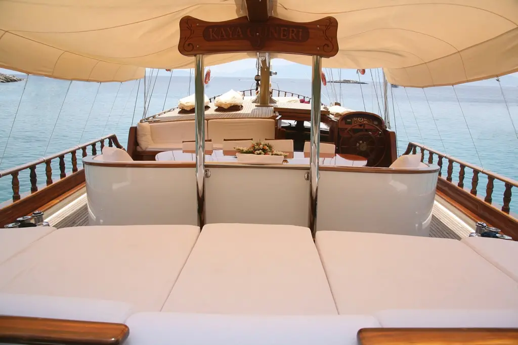 Embark on Kaya Guneri II, a crewed luxury gulet, for an unforgettable journey that blends the allure of Bodrum's waters with unmatched comfort and elegance.