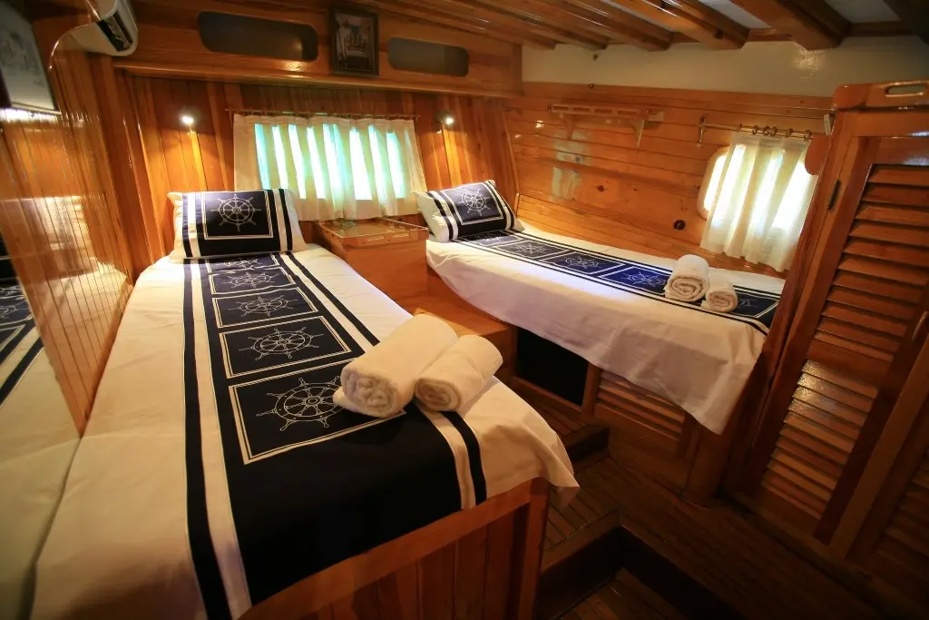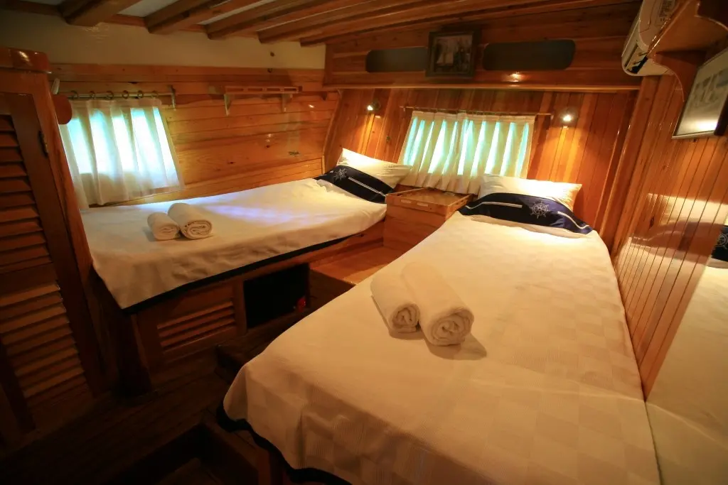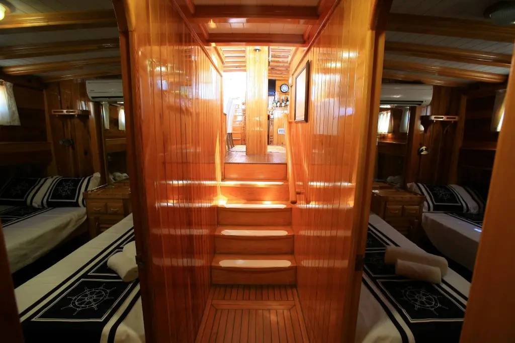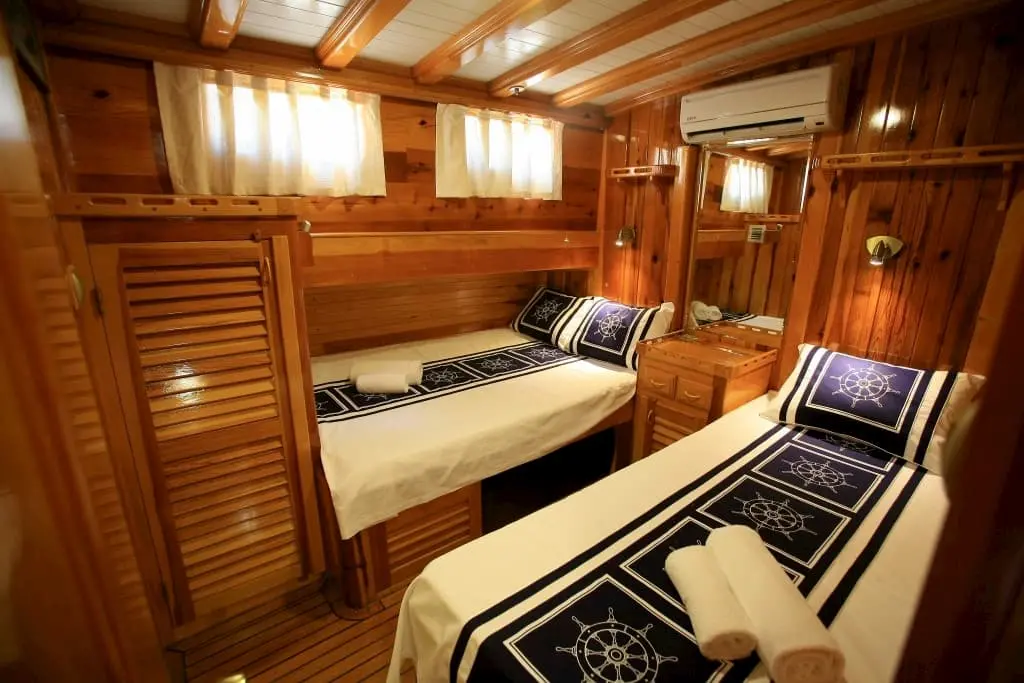 A dedicated crew of four brings the essence of Turkish hospitality to life, ensuring that every aspect of your voyage is cared for with attention to detail and a personal touch. Kaya Guneri II features six sumptuously appointed cabins, including 4 Double and 2 Twin, all fitted with modern amenities, en-suite bathrooms, and air conditioning, promising serene nights on the sea.