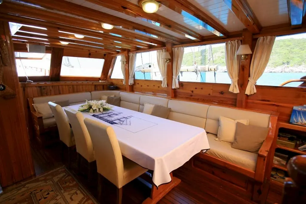 Indulge in culinary excellence with dishes crafted by our onboard chef, where each meal is a celebration of Mediterranean flavors and the rich culinary heritage of Turkey. Enjoy your meals against the backdrop of the Aegean, where dining al fresco on Kaya Guneri II elevates every dish with breathtaking views and the gentle sea breeze.