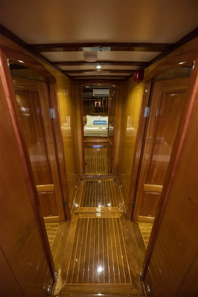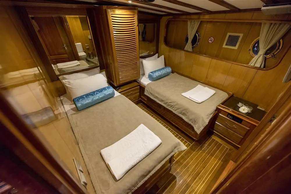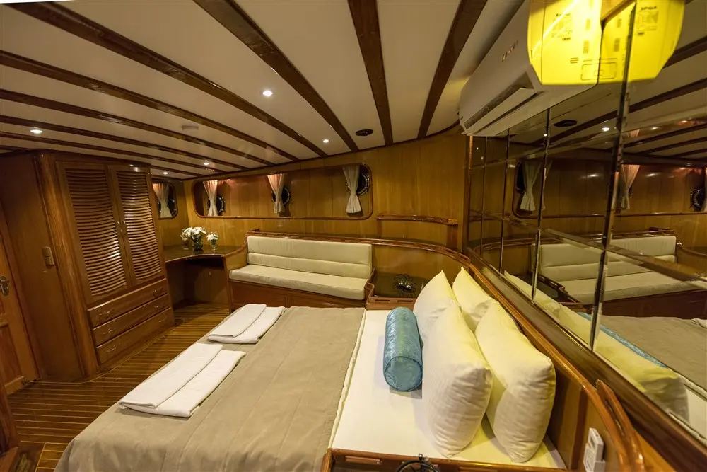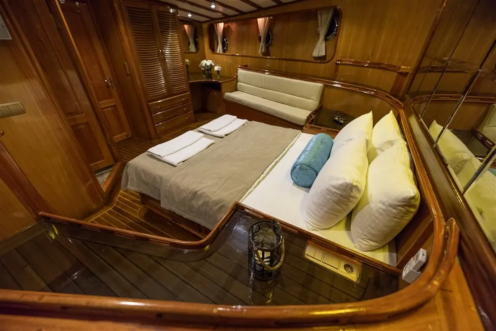Each master suite is fitted with luxurious furnishings and decor, providing a private retreat for guests. The twin cabins are ideal for friends or younger guests, combining functionality with comfort. The double cabins are designed to offer guests their own space without compromise, perfect for couples looking for a romantic setting.
