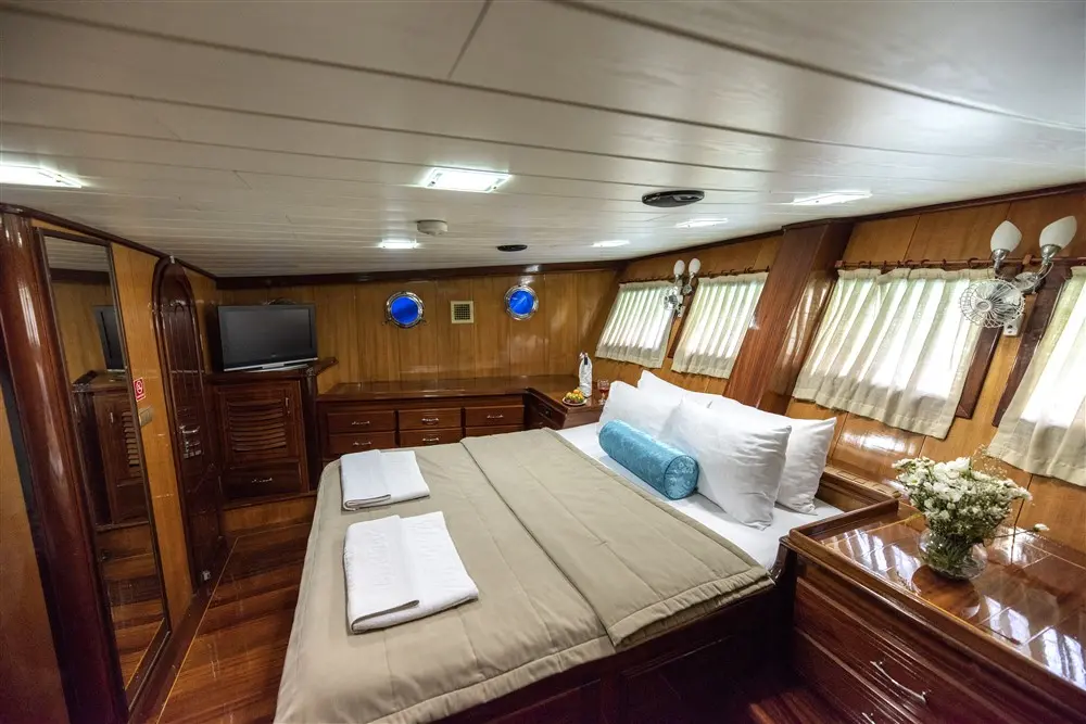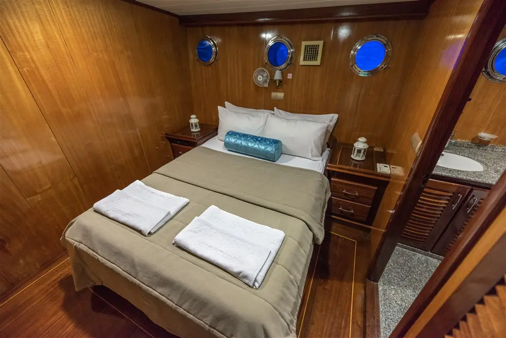 The master cabins offer spacious accommodations with deluxe bedding and private en suite facilities, ensuring a peaceful retreat for guests. The twin cabins are perfect for friends or younger family members, providing comfortable and convenient living spaces. The double cabins are not only cozy but smartly designed to maximize space and comfort, making them ideal for couples or guests who wish for a little extra privacy.