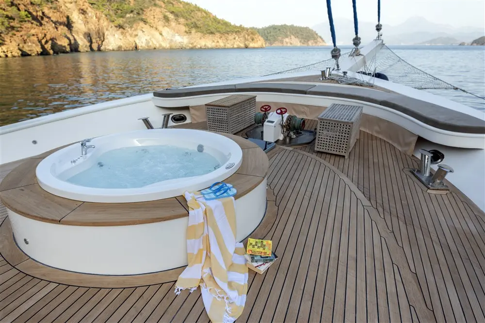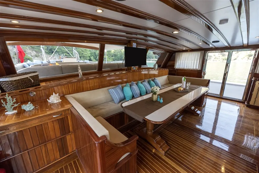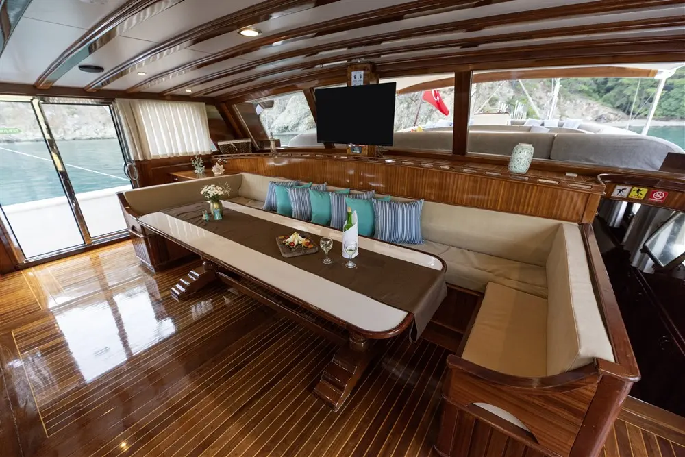 The onboard chef uses fresh, local ingredients to create a variety of delicious dishes that reflect both Turkish and international cuisines. Each meal is an event, prepared with flair and served with a view. Guests can choose to dine in the indoor restaurant or on the outdoor deck for an alfresco meal surrounded by breathtaking scenery. The flexible dining options cater to everyone’s preferences and occasions.