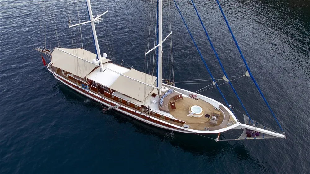 Kayhan Kaptan stands out with its refined craftsmanship and impressive 37-meter length, providing a spacious and opulent environment. Renovated in 2010, it features modern amenities while retaining the charm that gulet enthusiasts adore.