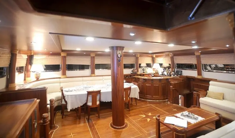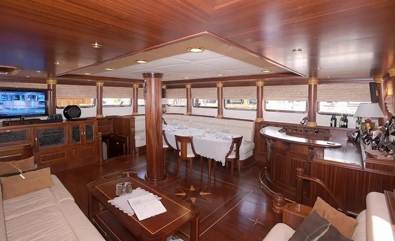 The Mare Nostrum boasts a powerful twin-engine configuration with 720 hp MAN engines, ensuring robust performance and a cruising speed of 13 knots. Equipped with advanced navigation systems including radar, GPS, and autopilot, it combines traditional gulet charm with modern technological enhancements.