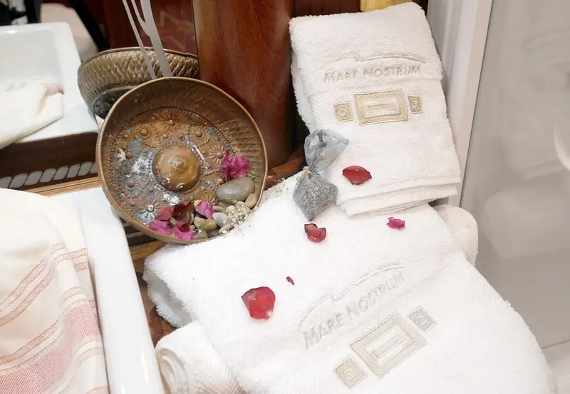 Mare Nostrum features six beautifully appointed cabins: five master suites and one twin cabin, each designed with the utmost attention to detail. All cabins are equipped with en-suite facilities, electric toilets, and individual air conditioning, offering guests a comfortable and private retreat.