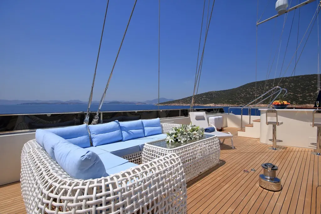 Dining aboard Meira is a gourmet journey in itself. The onboard chef crafts menus that blend Turkish tradition with global flavors. Whether it's a sunrise breakfast or a candlelit dinner, Meira’s culinary offerings leave a lasting impression.