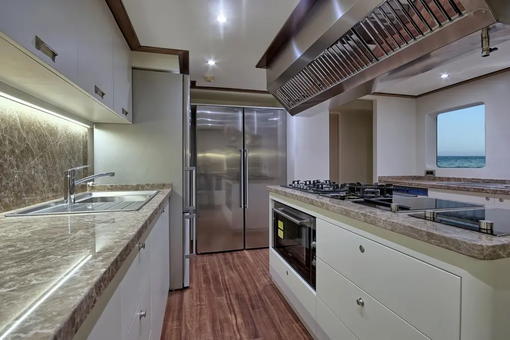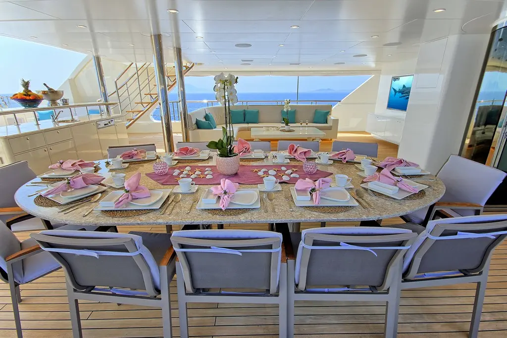 Meira features a home theater system in the salon and cabins, a music system, and wireless connectivity throughout. Whether it’s a quiet movie night or a lively evening party, the yacht adapts to every mood.