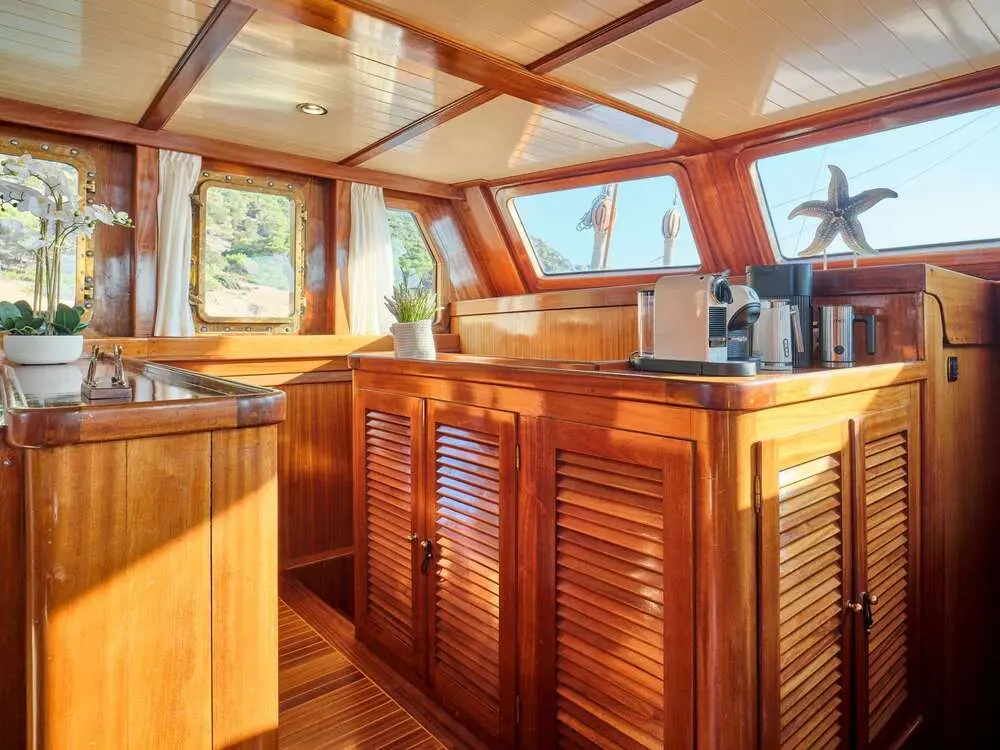 Gulet Myra offers a spacious and elegant layout, ensuring a comfortable and luxurious stay for all guests. Each cabin is tastefully designed with warm wooden finishes, plush bedding, and modern conveniences. The private en-suite bathrooms ensure privacy and comfort, while the air-conditioning system keeps the atmosphere cool and pleasant.