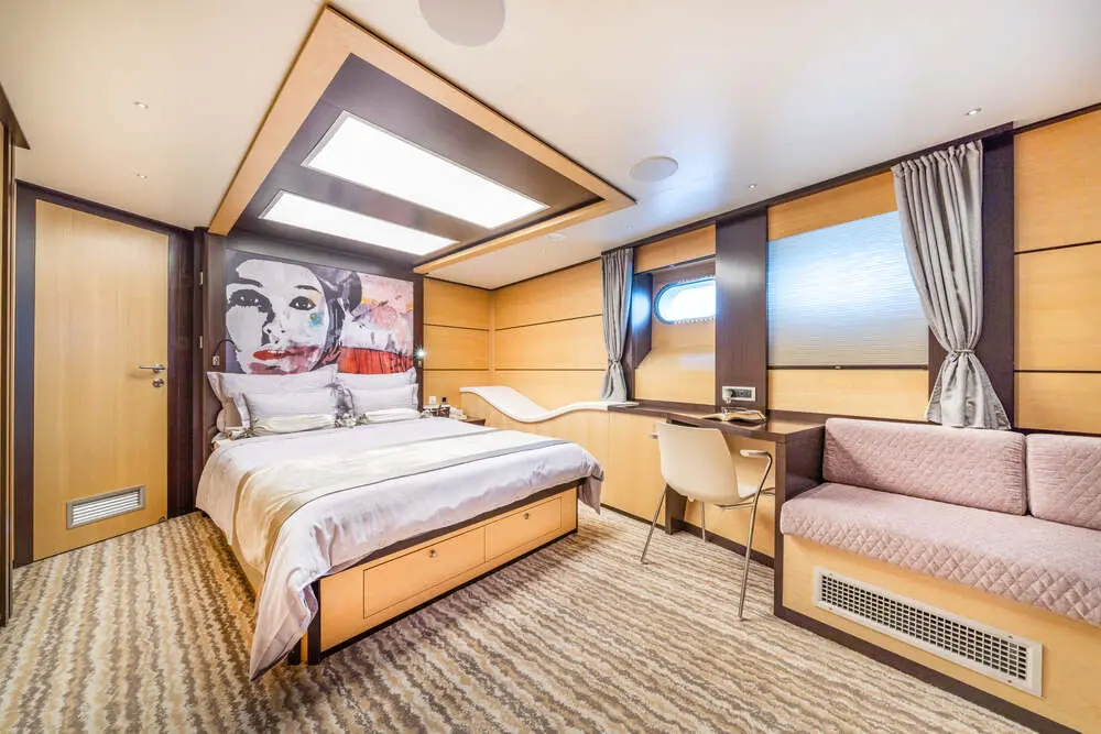 The yacht offers an extensive array of entertainment options, from a Sonos music system and PlayStation to water skis, sea bobs, and paddle boards, catering to all ages and interests. Navilux embarks from Croatia’s beautiful coast, offering guests the opportunity to explore the Adriatic Sea’s most picturesque islands and cities through customizable itineraries.