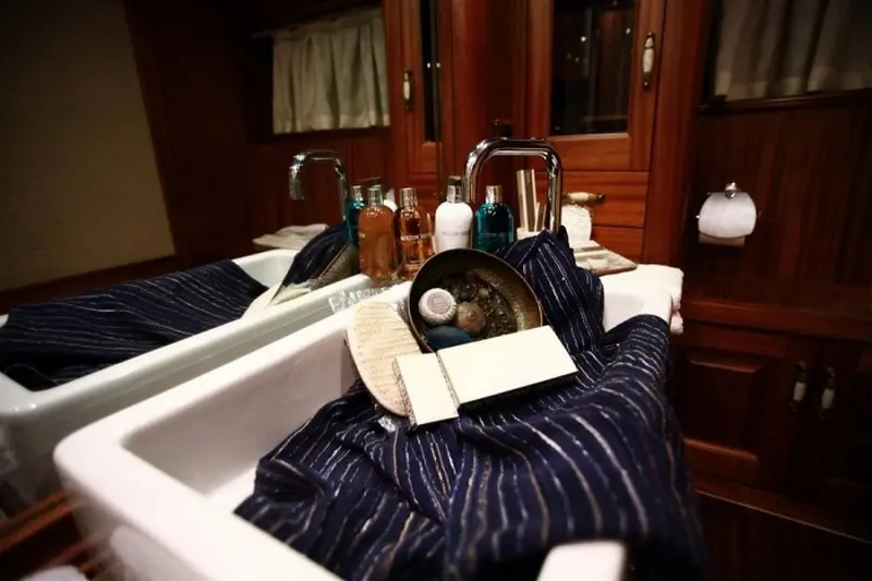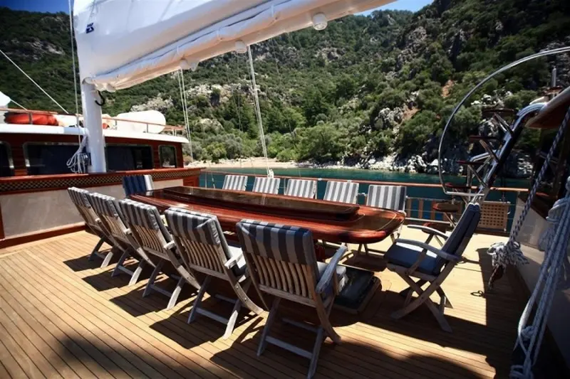 The gulet ensures utmost comfort with modern bathrooms equipped with shower boxes, electric toilets, and comprehensive air conditioning throughout the vessel, making every journey pleasant, irrespective of the weather. Equipped with advanced navigation technologies like radar, depth sounder, VHF radio, GPS, and autopilot, Nurten A is well-prepared for safe and efficient voyages along the Turkish coast.