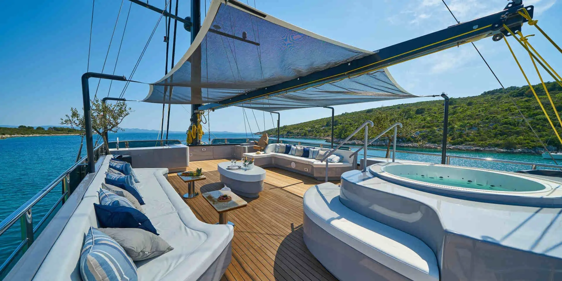 Tender boat with outboard engine-Yamaha 7m 150hp, Mini tender boat Yamaha 3m 20hp, Water ski, Wakeboard, Jet Ski, Sea bob, Donut, Ringo, Sea doo 130hp, 4x SUP, 2x Kayak, Fishing equipment, Snorkelling equipment, JOBE platform 4x2m, Jacuzzi, Air Conditioning, Wi-Fi, TV, Music System, Safe Box, Inter Phone, DVD, USB, I-Pad, I-Pod