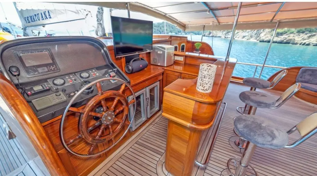Flagged under Turkey and docking at Bodrum, Sema Tuana boasts a cruising speed of 12 knots, state-of-the-art navigation systems, and plush accommodations, making her an ideal choice for exploring the turquoise waters of the Aegean Sea.