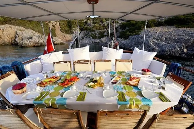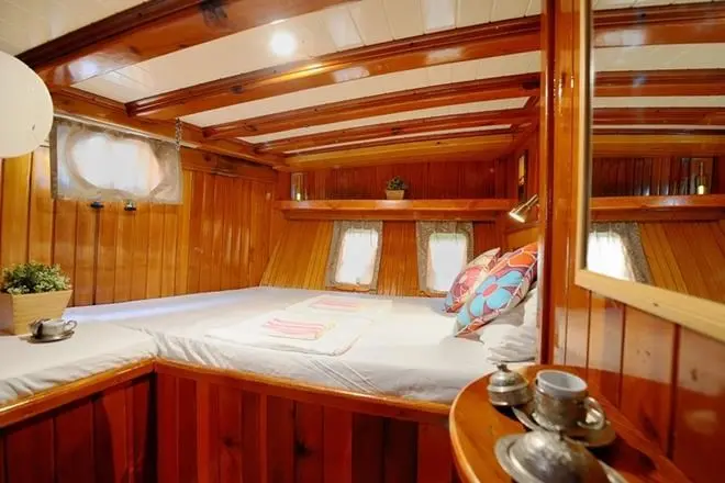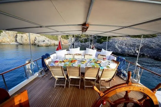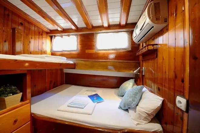 This well-maintained gulet is designed for smooth sailing, offering both stability and a cozy onboard experience. The Gulet Sıla provides ample space for up to 12 guests. Each cabin offers air conditioning, private en-suite facilities, and a warm, welcoming ambiance, ensuring comfort throughout the journey.
