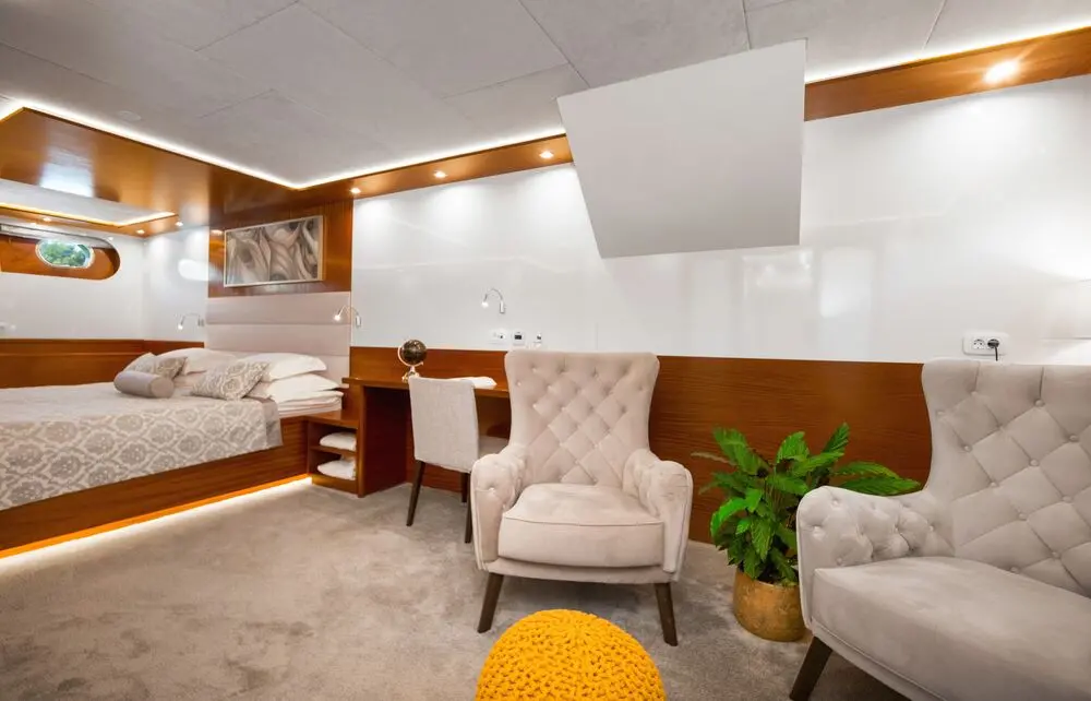 The Gulet Son De Mar is the ultimate choice for luxury yachting in Croatia. With a cruising speed of 9 knots and a sleek modern design, it offers a blend of elegance and practicality. Guests can indulge in various water sports, relax on the spacious deck, or enjoy the panoramic views of Croatia’s stunning coastline. The experienced crew ensures safety and personalized service, making your journey truly memorable.