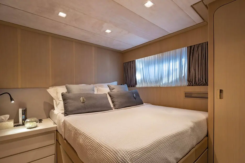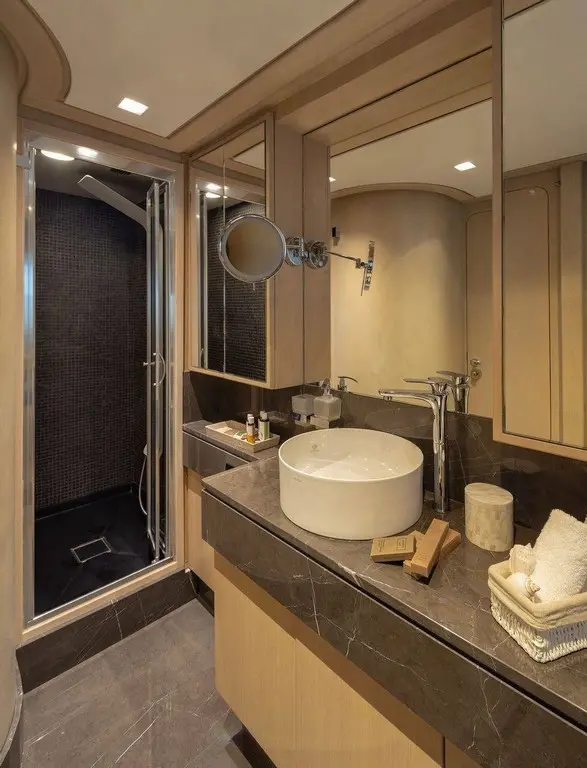 Details of the Cabin Arrangements The yacht features diverse sleeping arrangements with one master suite, three double cabins, and two twin cabins that are convertible, accommodating up to 12 guests in sheer comfort. Each cabin features electric toilettes and shower boxes, ensuring privacy and convenience.