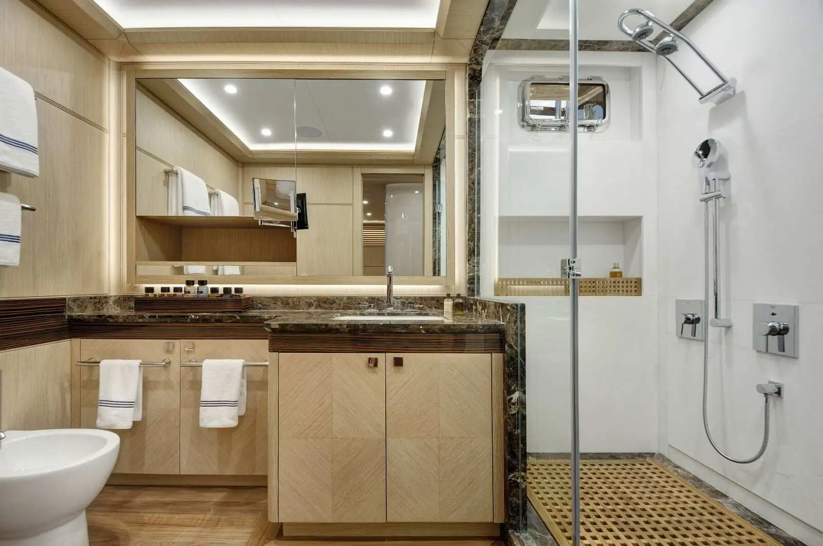 2 x Paddle Board, Seadoo jet ski 170 hp, Wakeboard, Water ski (adult-kids), 2 x Sea scooter (for children), Ringo (one person), Ringo ( up to 3 persons with seats), Tender 6,5mt 200HP + Service tender 20HP. Snorkelling Equipments, Deck Shower, Sun Mattress, Inflatable Water Toys, Fishing Equipments