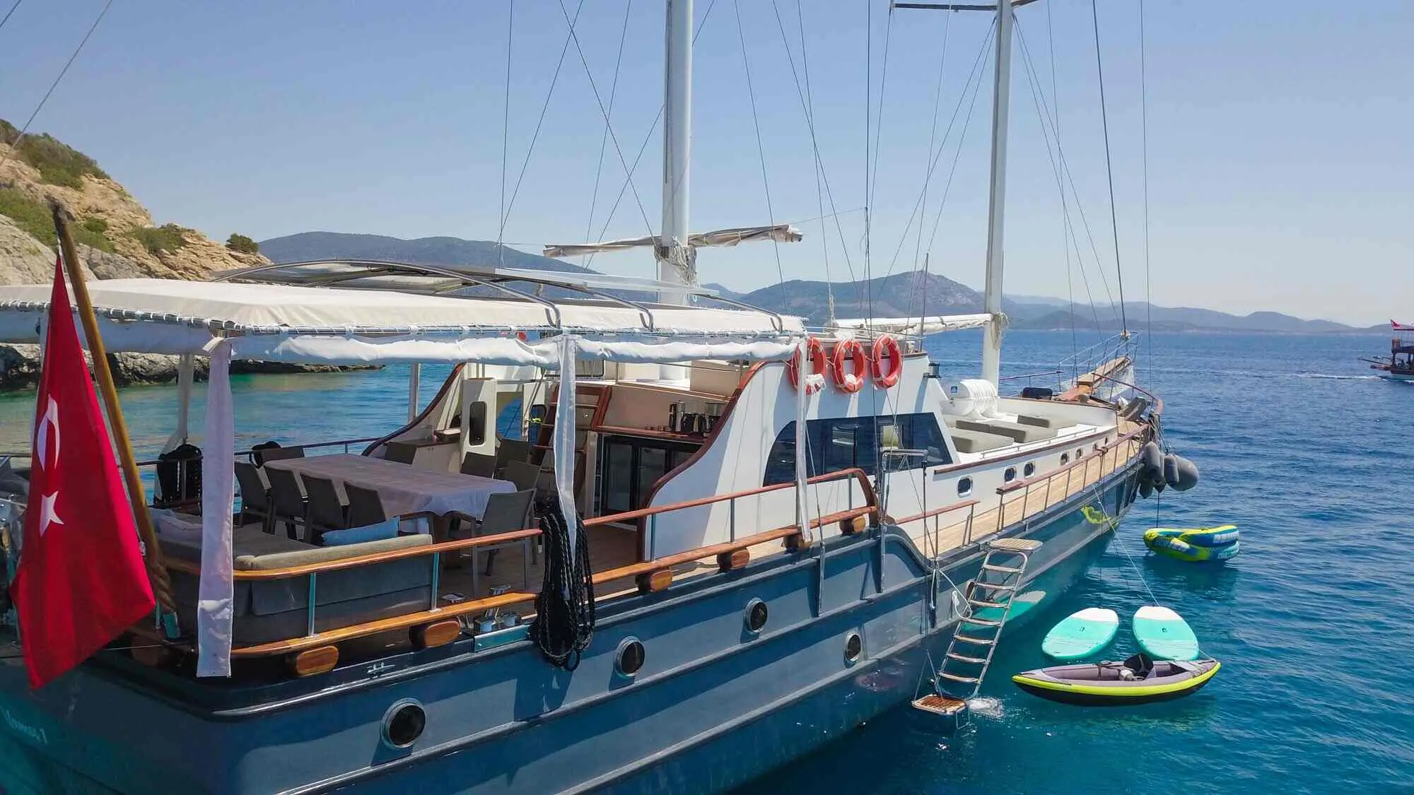 For those looking to enjoy the water, Vamos I offers a variety of water sports equipment. Guests can explore the surrounding waters using the gulet's canoe, providing a closer look at the beautiful coastal landscapes. Booking your stay on Vamos I is a straightforward process. Guests can book their stay through various channels, including travel agents, online booking platforms, or directly through the gulet's management.