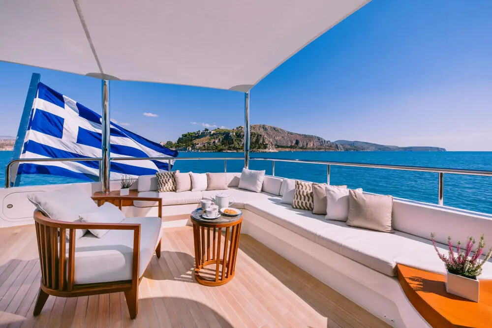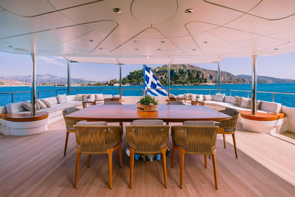 Greek charter routes often combine short scenic passages with time spent at anchor. This makes a yacht like Motor Yacht Xana especially appealing. She has the size and presence for confident cruising, while her onboard spaces support the kind of laid-back, outdoor-focused holiday most guests want in Greece.