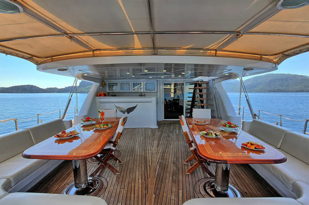 Equipped with the latest in navigational technology, including radar, GPS, and autopilot, Angelo II ensures safe and efficient voyages across the beautiful waters of Göcek. Strict safety protocols are in place aboard Angelo II, with all necessary safety equipment regularly inspected and maintained to ensure the highest standards of guest safety.