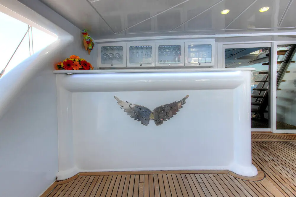 Guests can enjoy gourmet meals prepared by the onboard chef in the indoor restaurant or relax in the salon, which is equipped with a TV, DVD player, and music system. Wireless internet is also available throughout the vessel. Angelo II comes fully equipped with a variety of water sports equipment, including a canoe, water skis, and wind surf gear, providing endless entertainment and adventure for guests.
