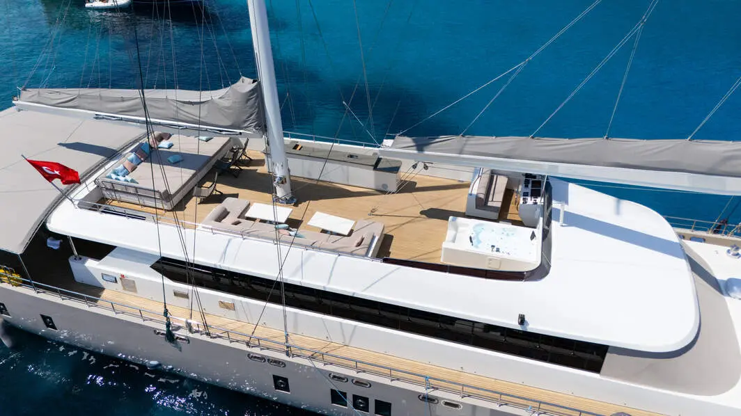 Gulet De Love is a large motor sailor, designed for both stability and luxury cruising. The size of the yacht ensures ample room for both indoor and outdoor activities, making it an ideal choice for groups or families looking to charter a spacious and well-appointed yacht.
