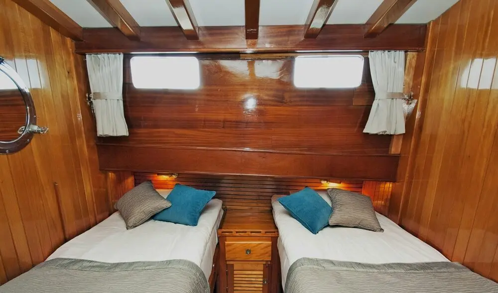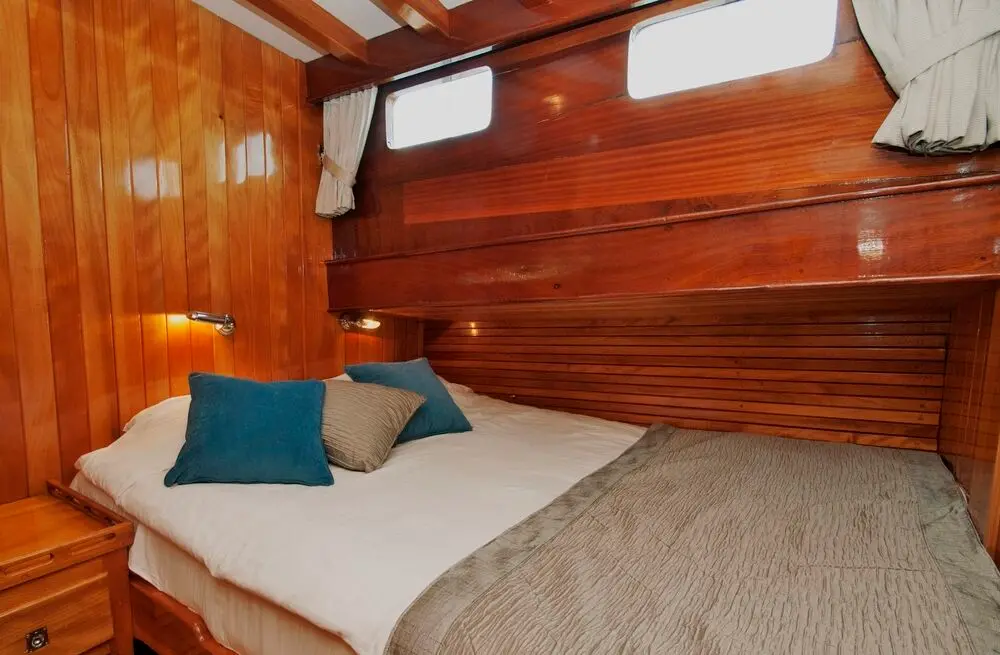 Powered by twin 284 hp Delphin engines and equipped with dual generators, Fortuna cruises smoothly at a pace of 10 knots. It boasts a substantial fuel capacity and ample fresh water, making it ideal for extended voyages along the scenic coasts of Turkey.