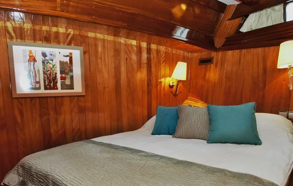 Fortuna accommodates up to 14 guests in a variety of cabins, including one master suite, four doubles, and two twins, each equipped with air conditioning and private bathrooms. The thoughtful layout ensures comfort and privacy for all aboard. Each cabin is a haven of luxury, outfitted with fine linens, individual climate control, and elegant decor. Modern conveniences such as en suite bathrooms with shower boxes provide the comforts of home on the open sea.