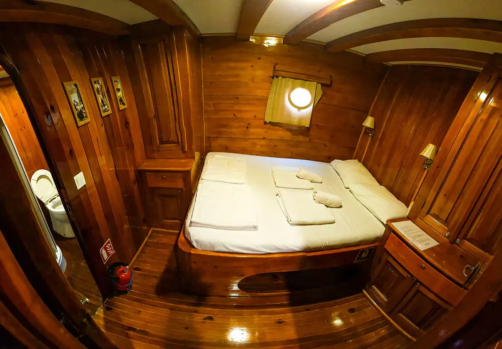 The gulet is equipped with advanced navigation tools including radar, GPS, and a depth sounder, which, along with the crew’s expert knowledge of the local waters, guarantees safe and efficient sailing. Halil Aga III adheres to strict safety standards, equipped with all necessary safety gear, including life jackets and fire extinguishers, to ensure peace of mind for all aboard.