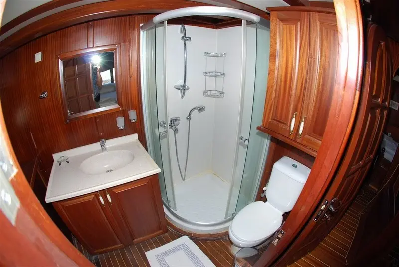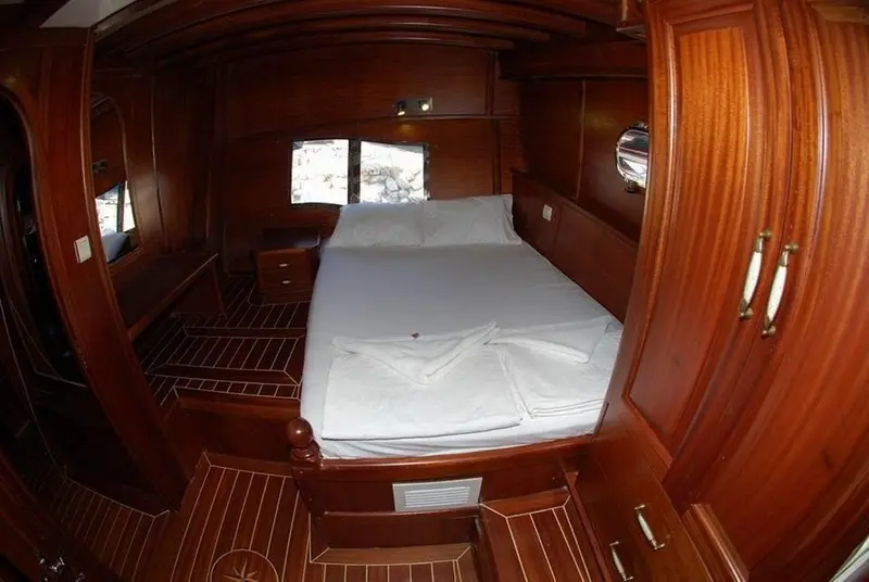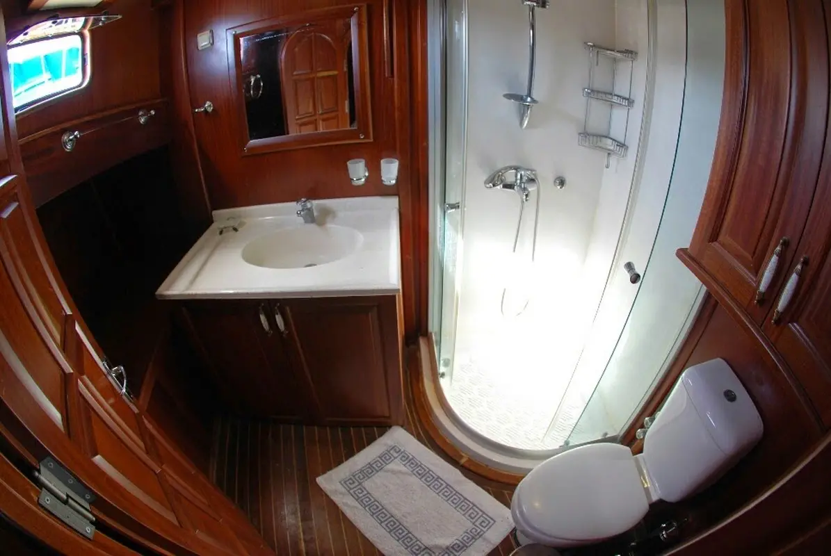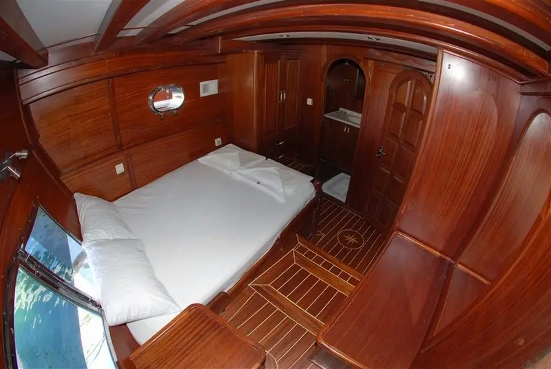 Built in 2003 and maintained to high standards, this gulet combines timeless charm with contemporary features. It is equipped with a powerful 450 hp engine and a cruising speed of 12 knots, balanced with a 60 hp dinghy for coastal exploration. Seven double cabins, each equipped with air conditioning and private shower box facilities, provide a comfortable and private retreat for all guests onboard. Home type toilets and well-appointed bathrooms ensure a home-like comfort amidst the azure waters of the Mediterranean.
