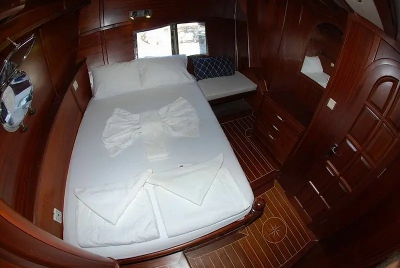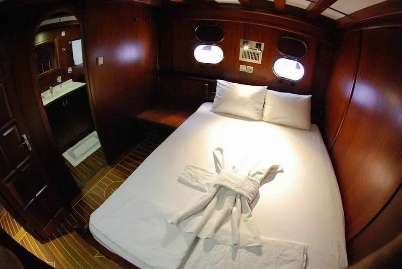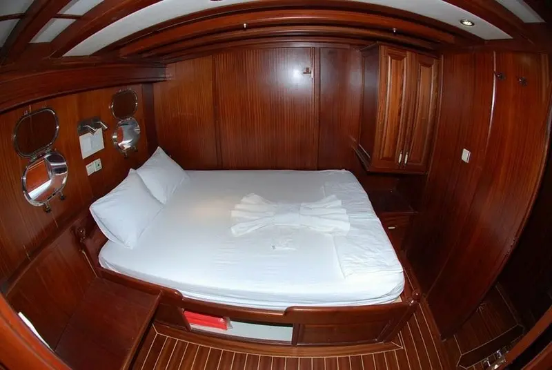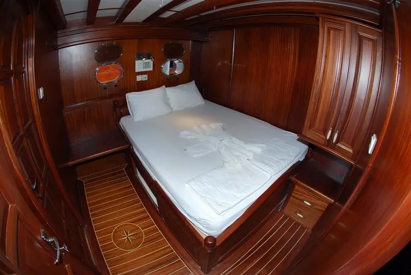 Equipped with advanced navigation tools such as radar, depth sounder, VHF radio, GPS, and autopilot, Gulet Sahinoglu I is prepared for safe and efficient voyages across diverse marine landscapes. The indoor restaurant and salon areas, equipped with a TV & DVD player and a robust music system, offer entertainment and communal gathering spaces.