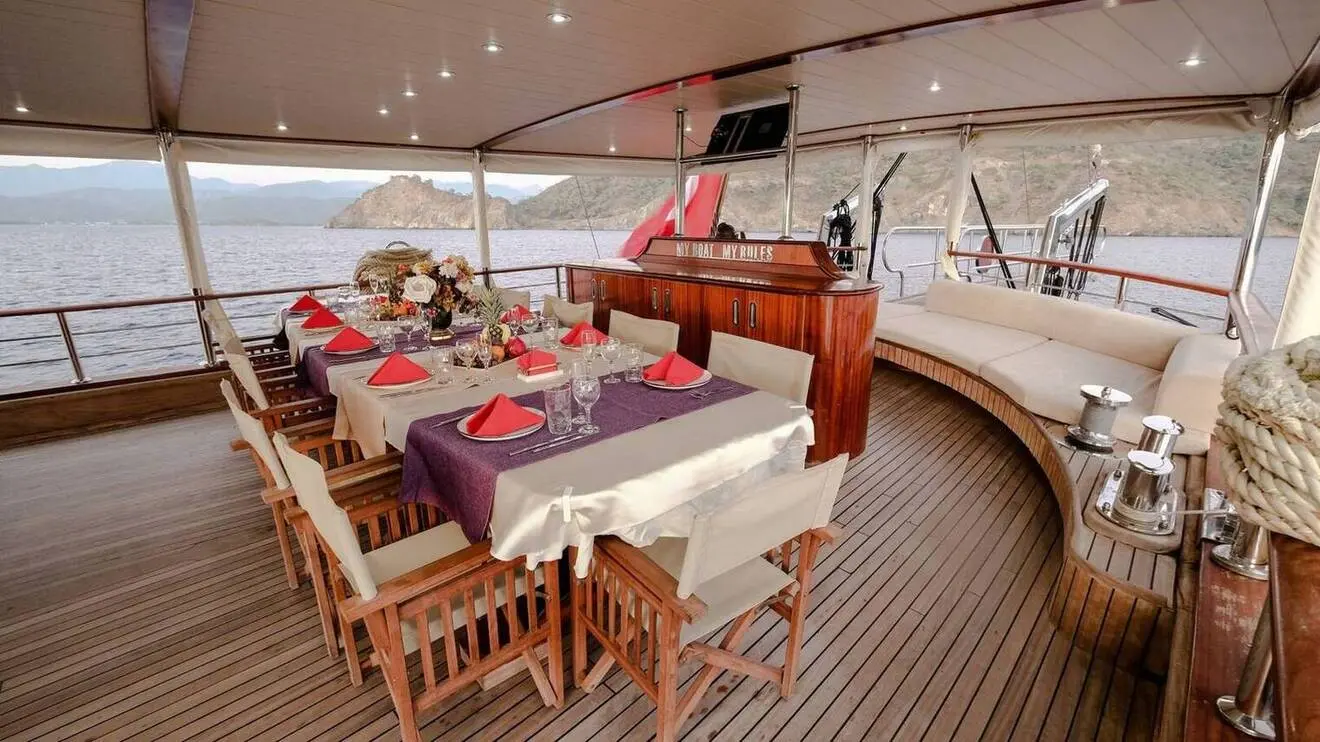The Gulet Ada Deniz stands as one of the most spacious and versatile luxury gulets on the Turkish Riviera. At an impressive 34 meters in length, this beautifully crafted vessel offers generous living areas, refined wooden interiors, and an exceptional mix of comfort and performance.