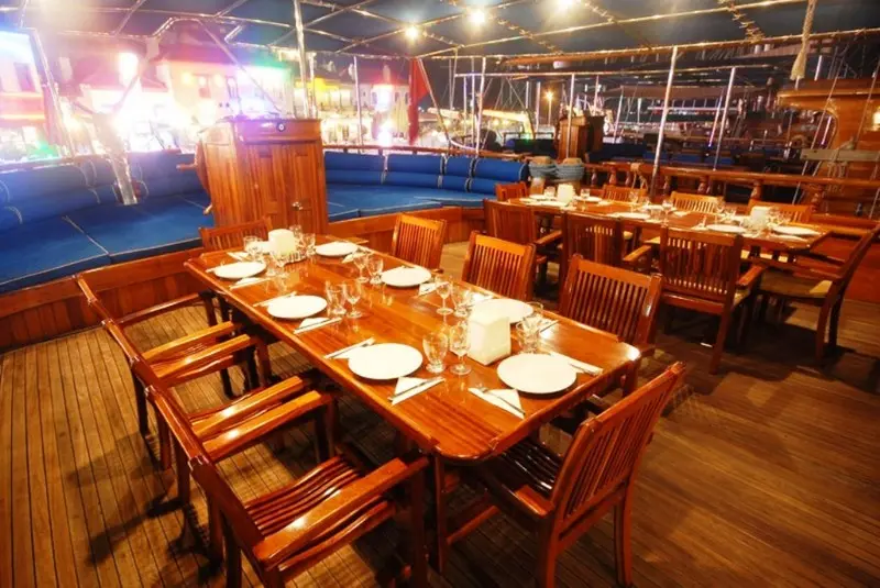 Guests aboard Bahriyeli D can delight in delicious meals prepared by the onboard chef, featuring a mix of international dishes and local specialties made from fresh, locally sourced ingredients. The indoor restaurant provides a comfortable and scenic setting for dining. Bahriyeli D offers customizable sailing itineraries that allow guests to explore the best of Marmaris and its stunning surroundings. From secluded beaches to vibrant coastal towns, the itineraries are designed to showcase the beauty and culture of the region.