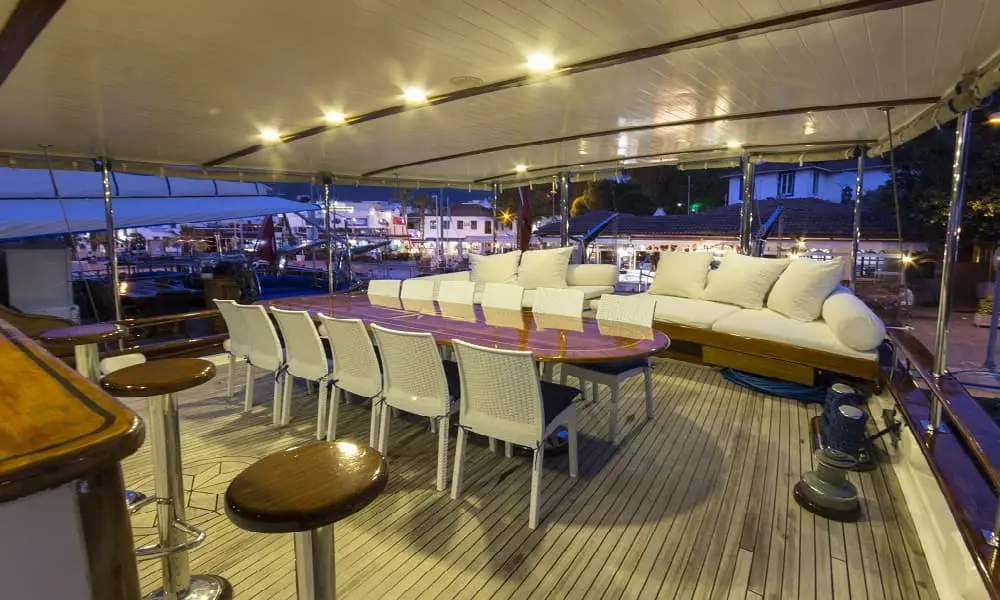 Gulet Cemre IV offers customizable itineraries that explore the stunning bays and coves around Bodrum, providing guests with the opportunity to discover secluded beaches, ancient ruins, and crystal-clear waters. The gulet is an ideal venue for special events such as weddings, birthdays, or corporate retreats, offering tailored services to ensure each event is uniquely memorable. Safety is a top priority on Gulet Cemre IV, equipped with the latest safety equipment and navigational tools. The crew is well-trained in all aspects of yacht safety to ensure a secure voyage.