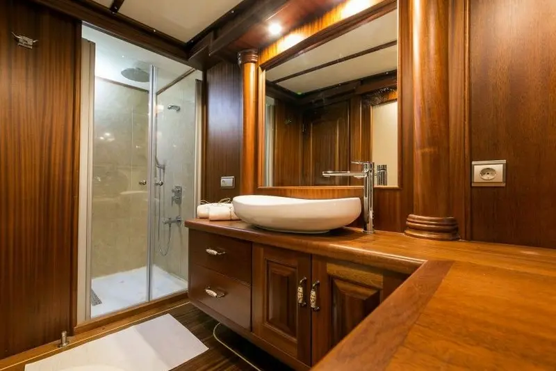 Gulet Halcon Del Mar boasts impressive specifications, showcasing the engineering precision and attention to detail that went into its construction and refit in 2018. The boat is powered by two 750 hp Mitsubishi engines, allowing for a cruising speed of 15 knots. Additionally, the 30 kW and 40 kW Onan generators ensure a stable power supply for all onboard amenities, from the jacuzzi to the entertainment systems.