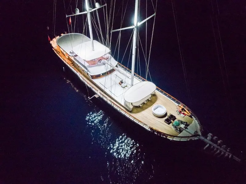 The Halcon Del Mar, a deluxe motor sailor based in Marmaris, Turkey, sets the bar high for luxury charters. Measuring 42 meters in length, this majestic vessel can comfortably accommodate up to 16 guests in its meticulously designed cabins. With its modern features and expansive deck space, the Halcon Del Mar guarantees an experience that combines the allure of Turkish tradition with state-of-the-art sailing technology.