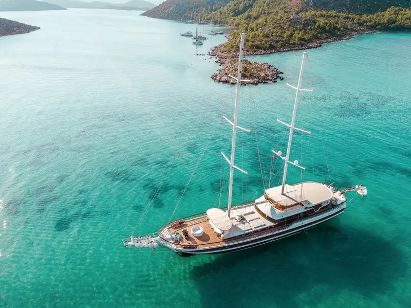 A professional crew of seven is dedicated to providing an unforgettable experience aboard the Halcon Del Mar. The crew includes a captain, chef, deckhands, and hostesses, all trained to meet the highest standards of hospitality. Their roles are clearly defined: Marmaris, the base port of Halcon Del Mar, serves as a gateway to some of the most stunning destinations along the Turkish Riviera.