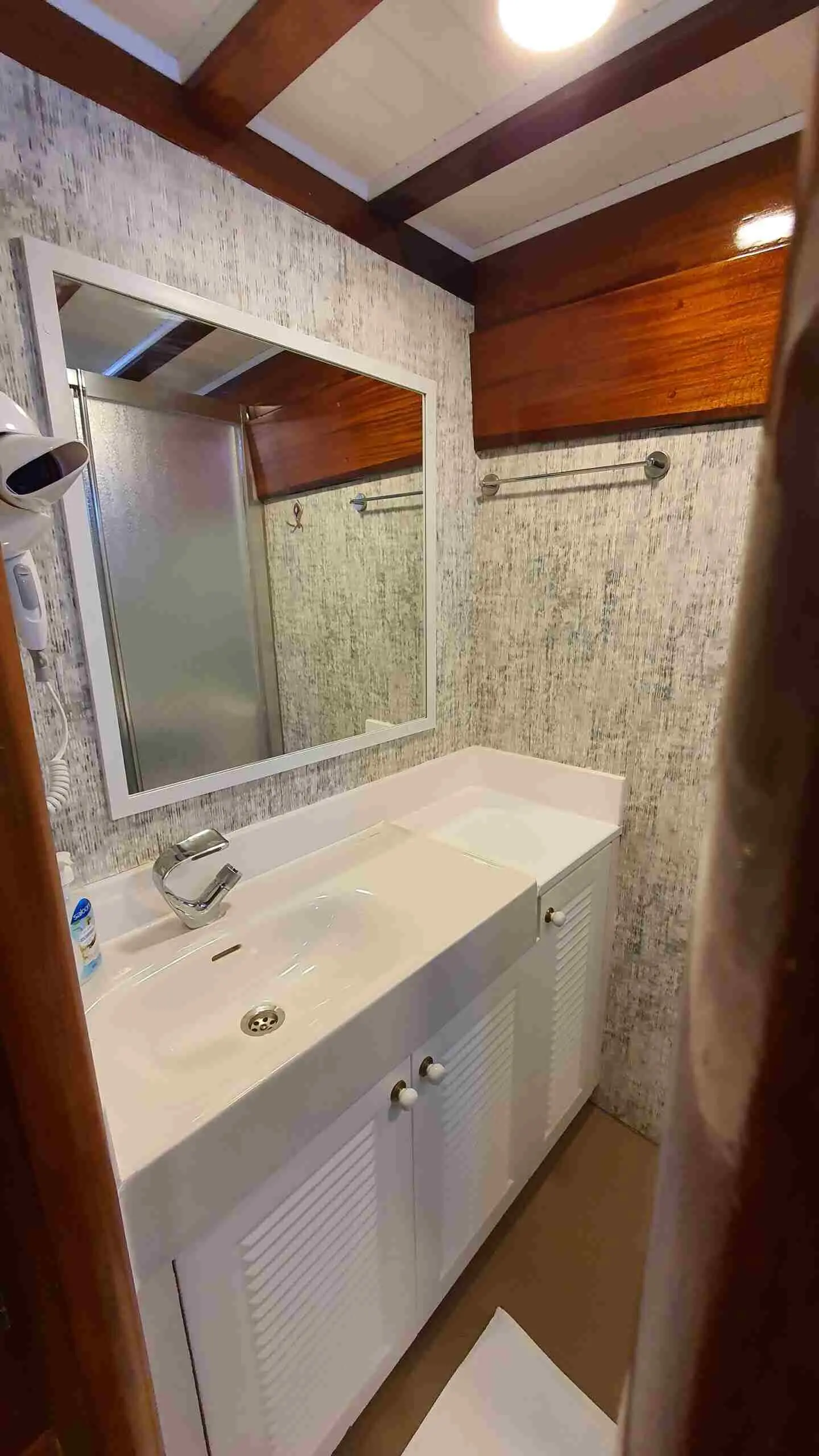 A skilled crew of three to four members, including a captain, chef, and deckhands, is dedicated to providing impeccable service. Their expertise ensures a personalized and enjoyable sailing experience for every guest. Onboard amenities include a TV, Wi-Fi, and a range of water sports equipment such as a sea scooter, paddle board, two canoes, snorkeling, and fishing gear, offering guests multiple options for entertainment and adventure on the sea.
