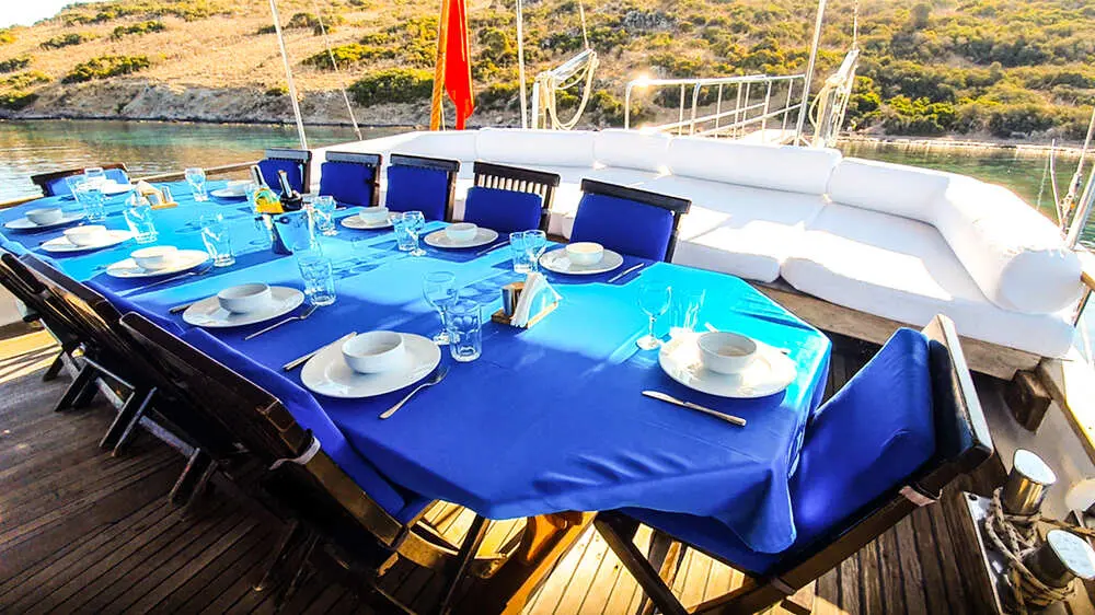 Gulet Halil Ağa I is also an excellent choice for hosting special events, providing a luxurious and unique setting that can be customized to meet specific event needs and preferences. Safety is paramount on Gulet Halil Ağa I, equipped with the latest safety and navigational tools. The crew is thoroughly trained in safety protocols, ensuring a secure and enjoyable experience for all guests.