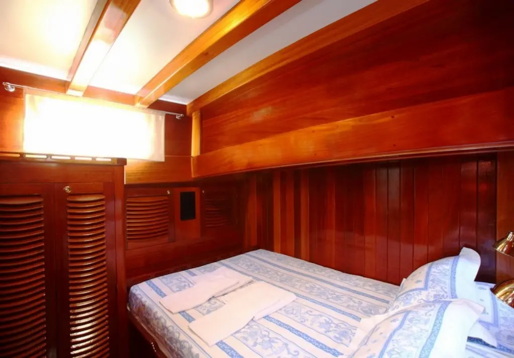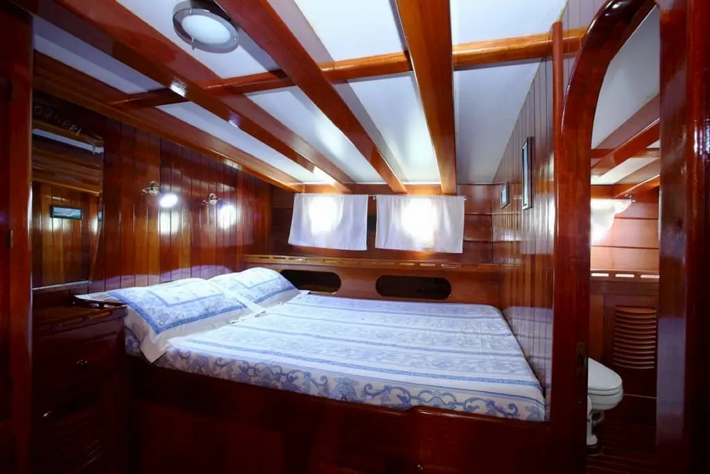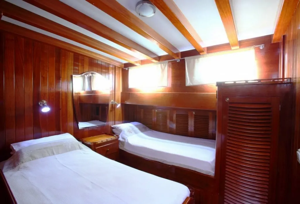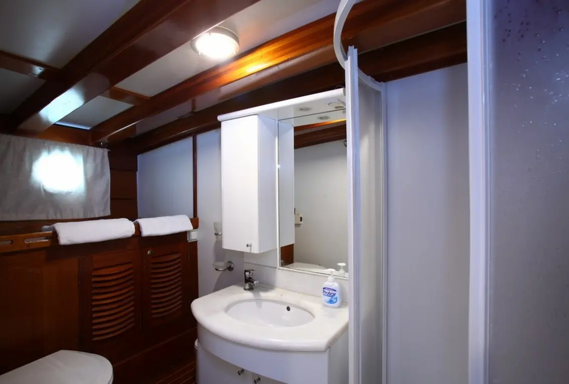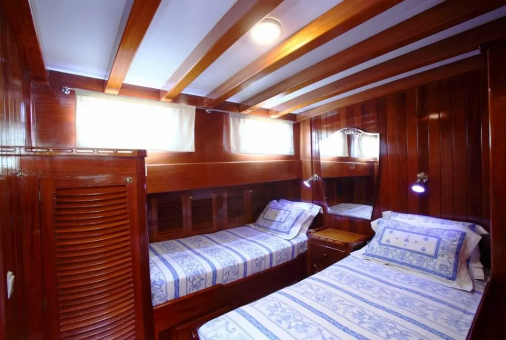 Kaya Guneri III features a variety of cabin configurations, including four double and four twin cabins, all equipped with en-suite bathrooms and air conditioning. The gulet's interiors are designed to provide guests with comfort and elegance, reflecting the vessel’s luxurious standard.
