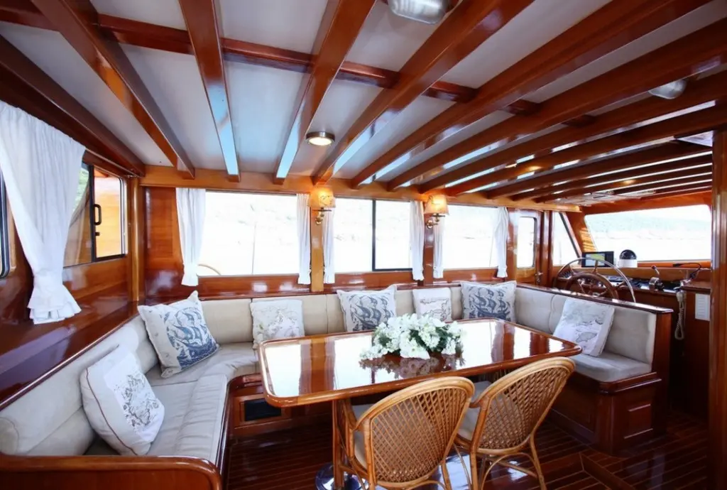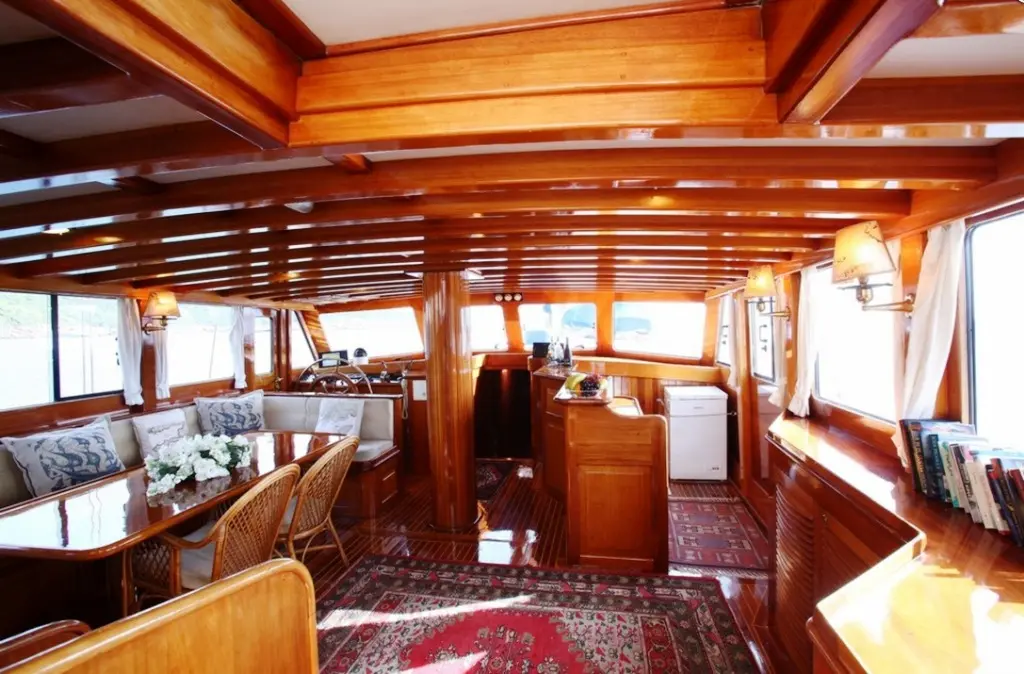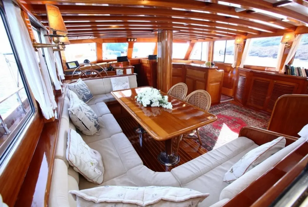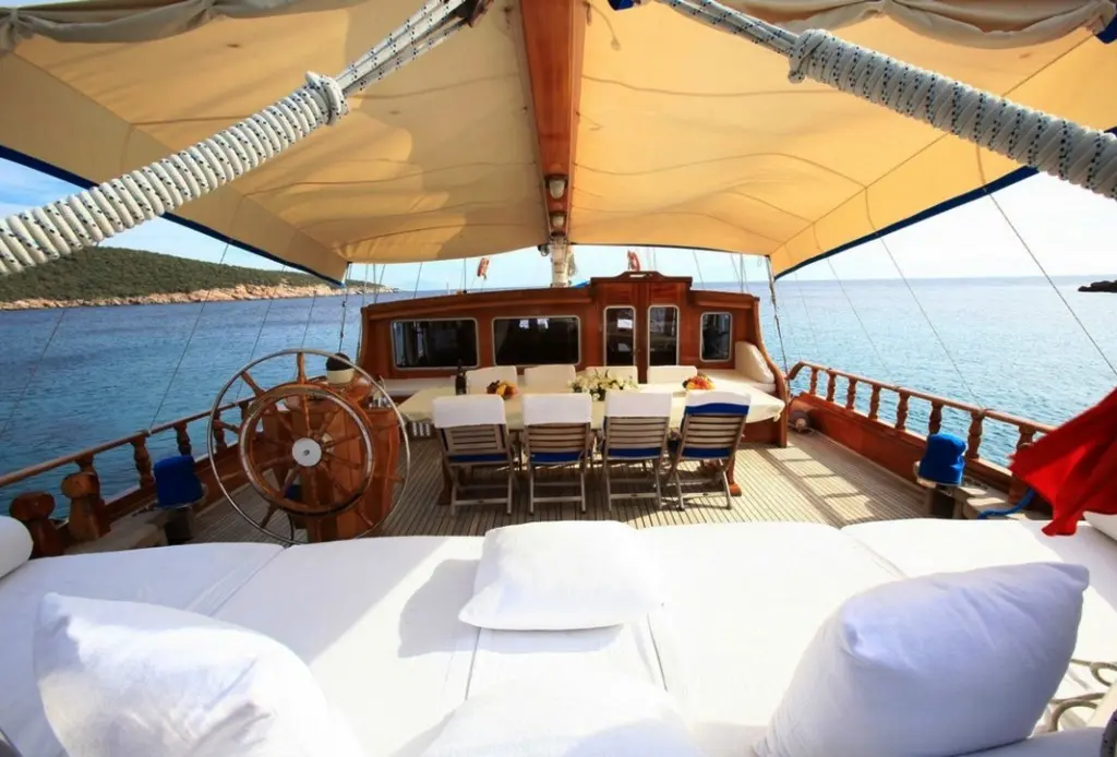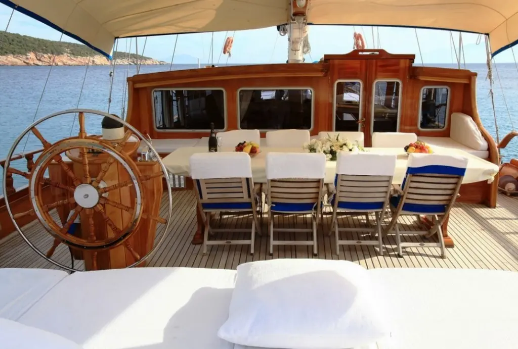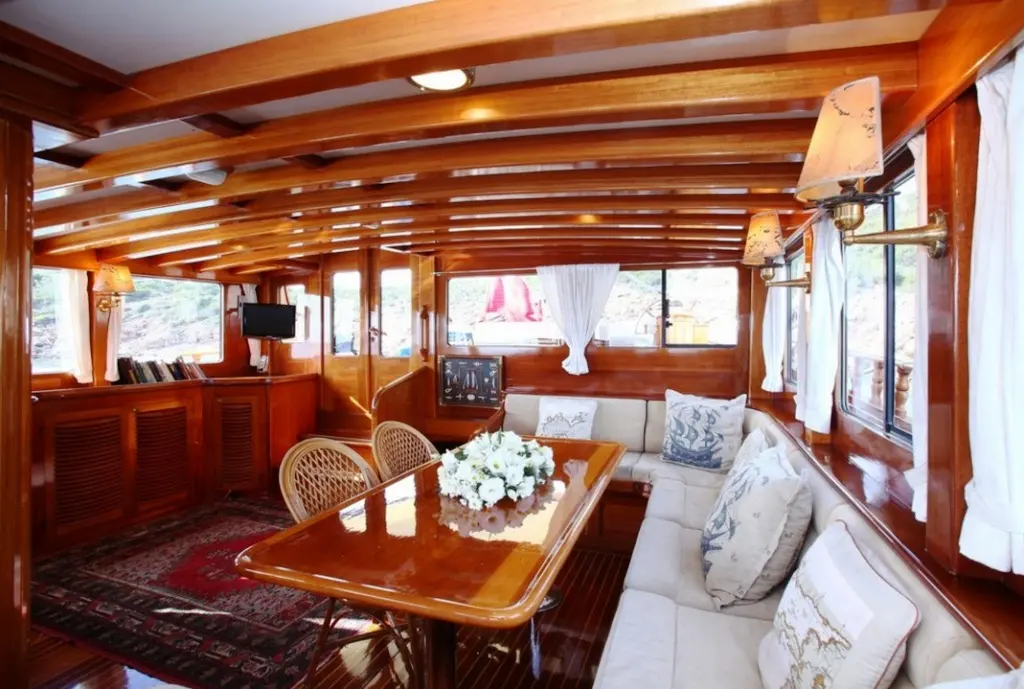 Guests aboard can savor delicious meals prepared by the onboard chef, featuring a mix of international dishes and local Turkish specialties, all made from fresh, locally sourced ingredients. Dining onboard is a delightful experience, with meals served in the gulet's cozy indoor restaurant.