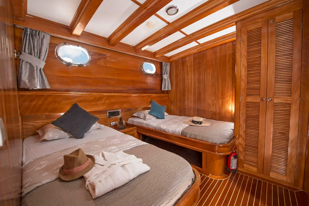 The Gulet Parss features 8 well-appointed cabins, providing comfortable accommodations for guests seeking a mix of luxury and relaxation. Each cabin is elegantly designed with private bathrooms, ample storage, and air-conditioning, ensuring maximum comfort throughout your journey.