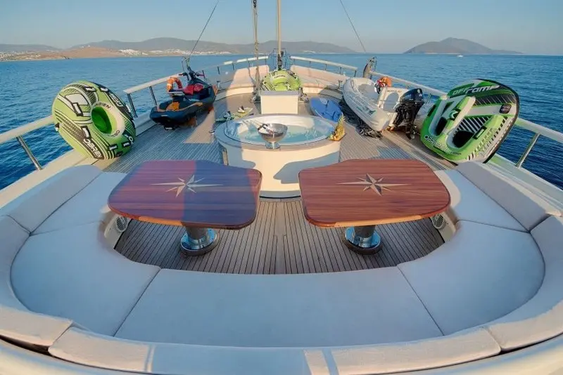 Gulet Queen of Salmakis offers superb facilities for hosting private events and corporate gatherings, providing a unique and luxurious setting that can be customized to meet specific event needs and preferences. Safety is paramount on Gulet Queen of Salmakis, equipped with the latest safety and navigational tools. The crew is extensively trained in safety protocols, ensuring a secure and enjoyable experience for all onboard.