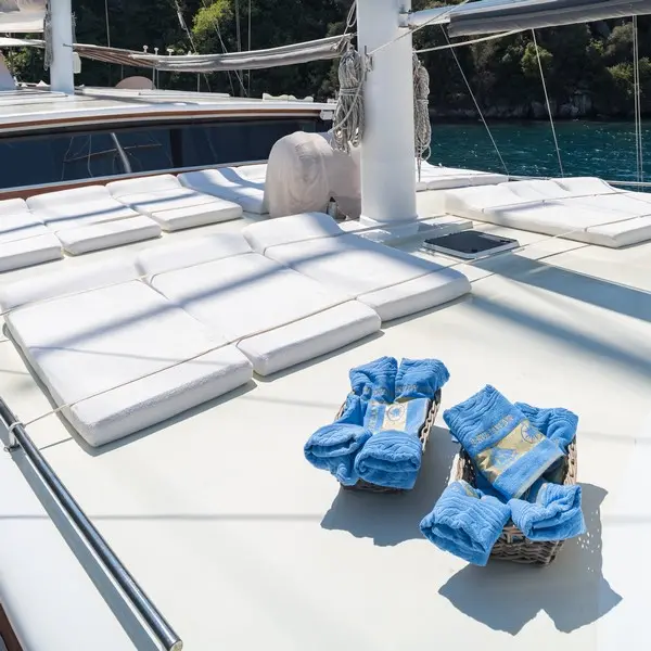 The gulet is an excellent choice for hosting special events, from intimate weddings to festive celebrations, providing customized arrangements to ensure each occasion is uniquely memorable. Safety is paramount on Gulet S Nur Taylan, equipped with the latest safety and navigational tools. The crew is thoroughly trained in safety protocols, ensuring a secure and enjoyable experience for all onboard.