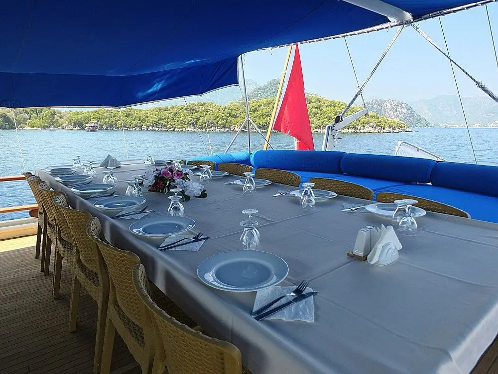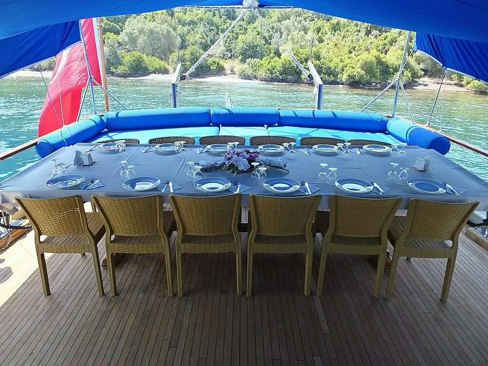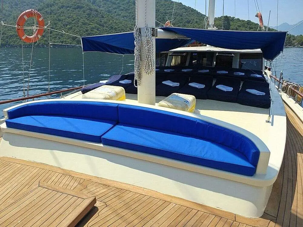 With its Marmaris base, Gulet Seğmen is perfectly positioned for exploring the turquoise waters of Turkey’s coastline. Gulet Seğmen is equipped with advanced GPS navigation and full maritime safety equipment, ensuring a secure and smooth sailing experience. This gulet provides a mix of onboard entertainment and thrilling water sports, making it perfect for both relaxation and adventure seekers.