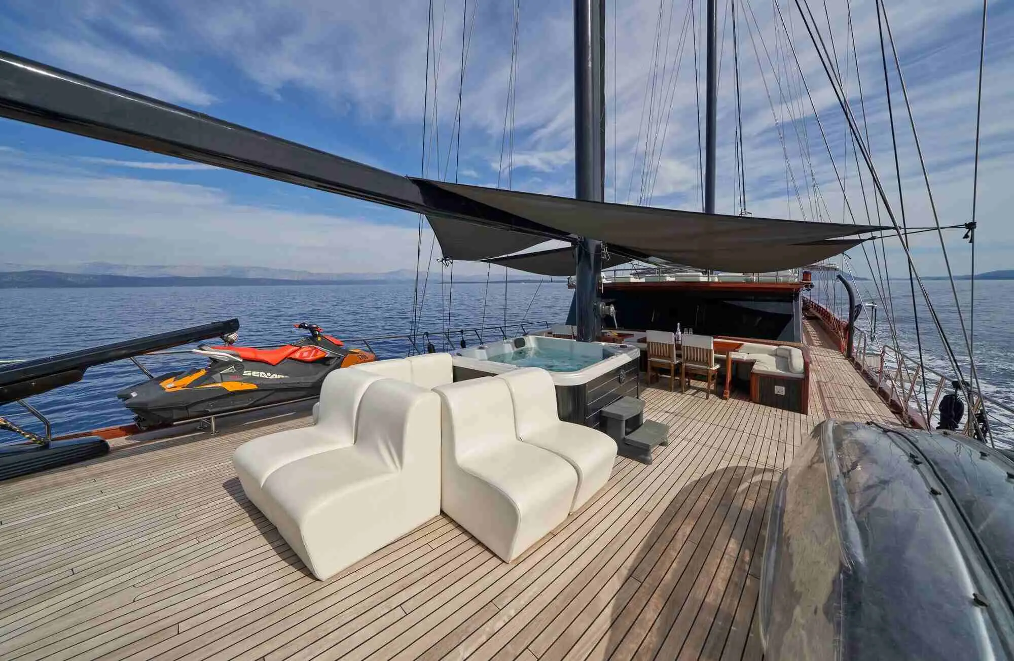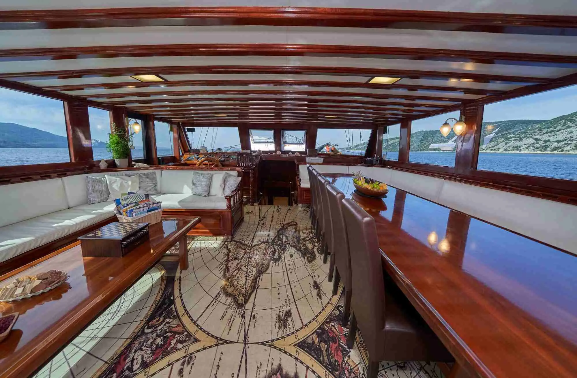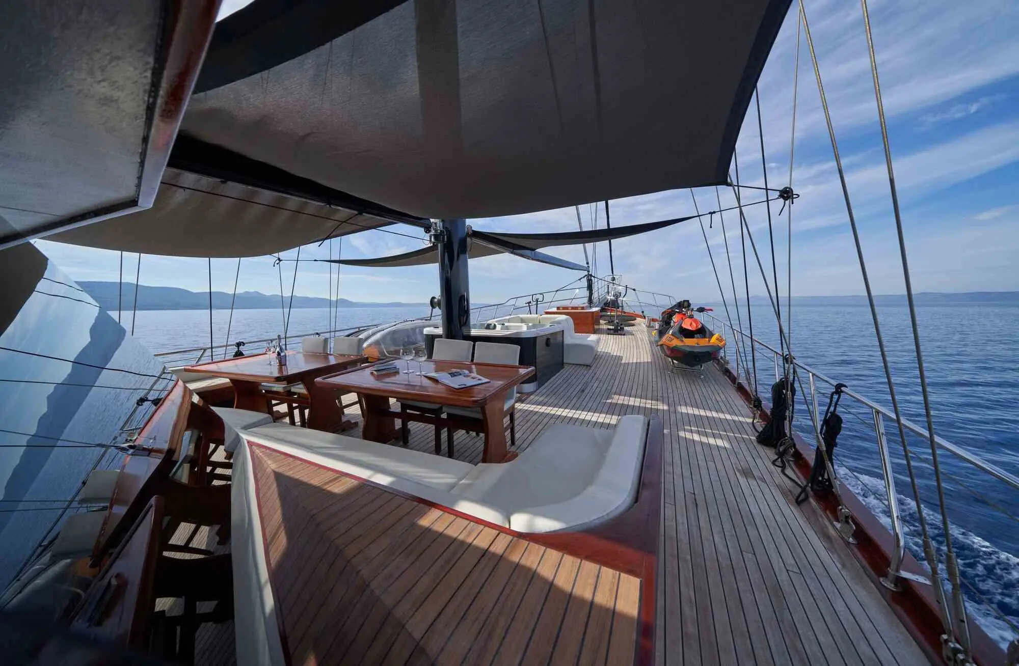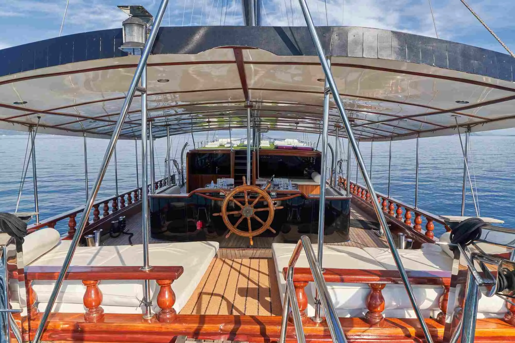 At 38 meters in length and with a beam of 8.12 meters, Gulet Stella Maris is both spacious and stable. It is powered by twin 450 HP Fiat Iveco engines and equipped with advanced navigation systems, ensuring smooth sailing at a cruising speed of 9 knots.