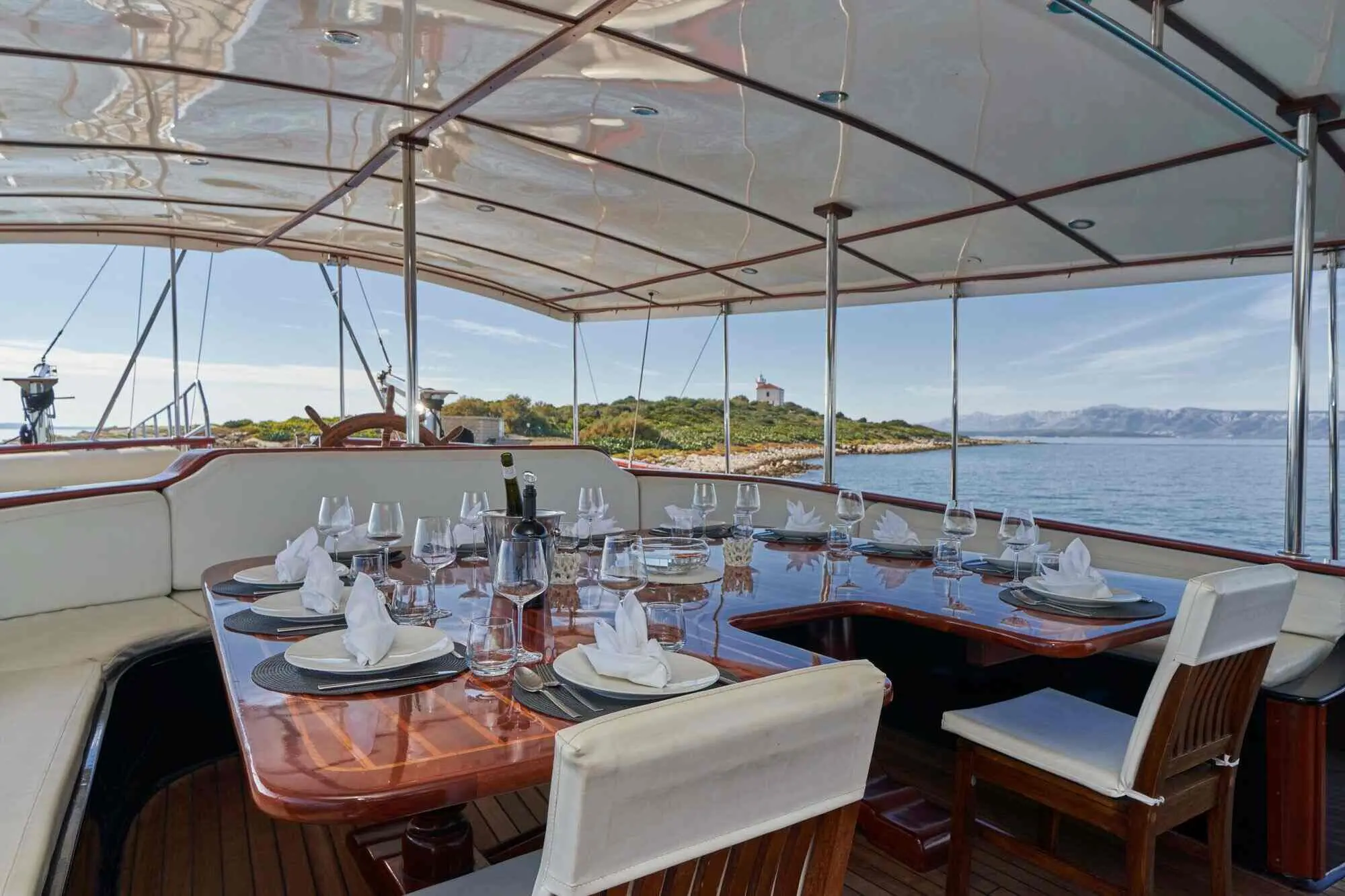Guests can enjoy exquisite meals prepared by the onboard chef, featuring a menu of international dishes and local Croatian specialties, all made from fresh, locally sourced ingredients. Gulet Stella Maris sails customizable itineraries that showcase the stunning Croatian coastline, allowing guests to explore secluded bays, historical sites, and vibrant local cultures, making each journey unique and exciting.