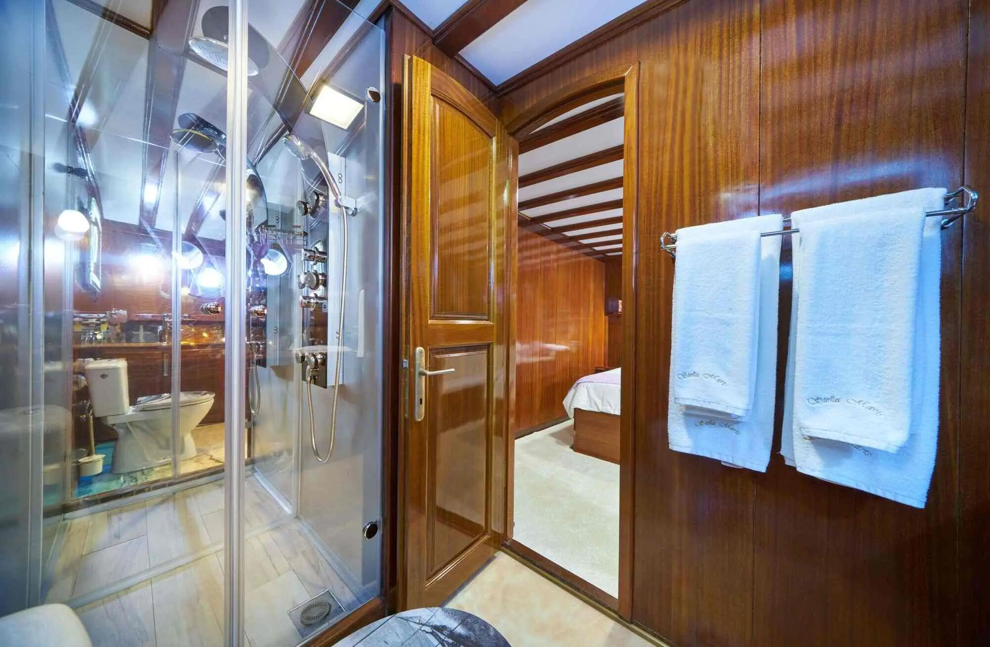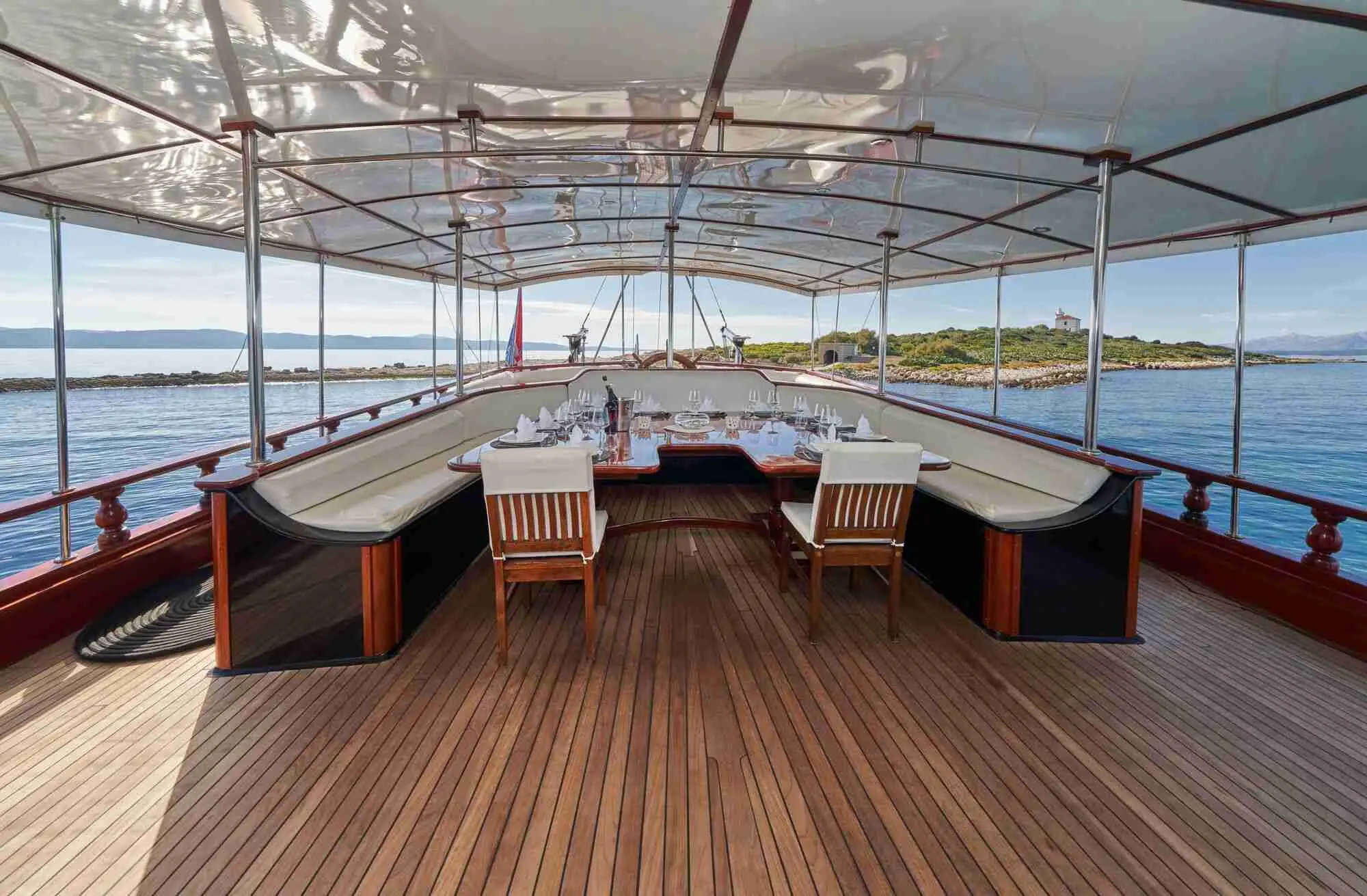 The gulet is perfectly equipped for hosting special events, such as weddings, anniversaries, or corporate gatherings, offering customized arrangements to ensure each occasion is uniquely memorable. Safety is a top priority on Gulet Stella Maris, equipped with the latest safety and navigational equipment. The crew is extensively trained in all aspects of yacht safety to ensure a secure environment for all onboard.
