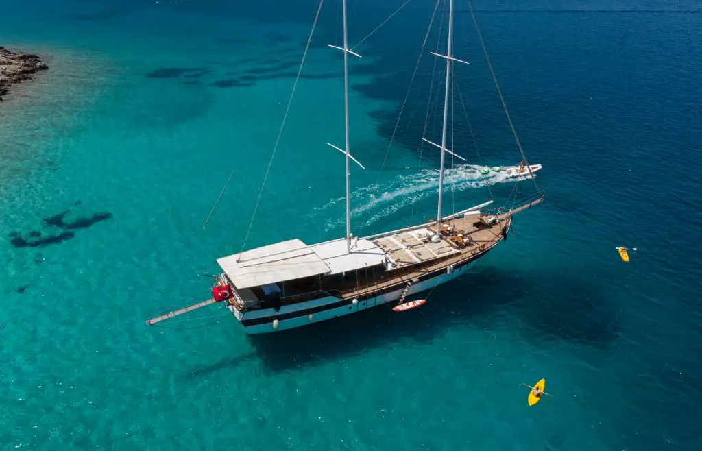 Gulet Ametist A offers a premier sailing experience in Bodrum, renowned for its crystal-clear waters and stunning coastal scenery. This 30-meter gulet, accommodating up to 20 guests, is perfect for family gatherings, group trips, or corporate outings seeking a luxurious escape in the Turkish Aegean.