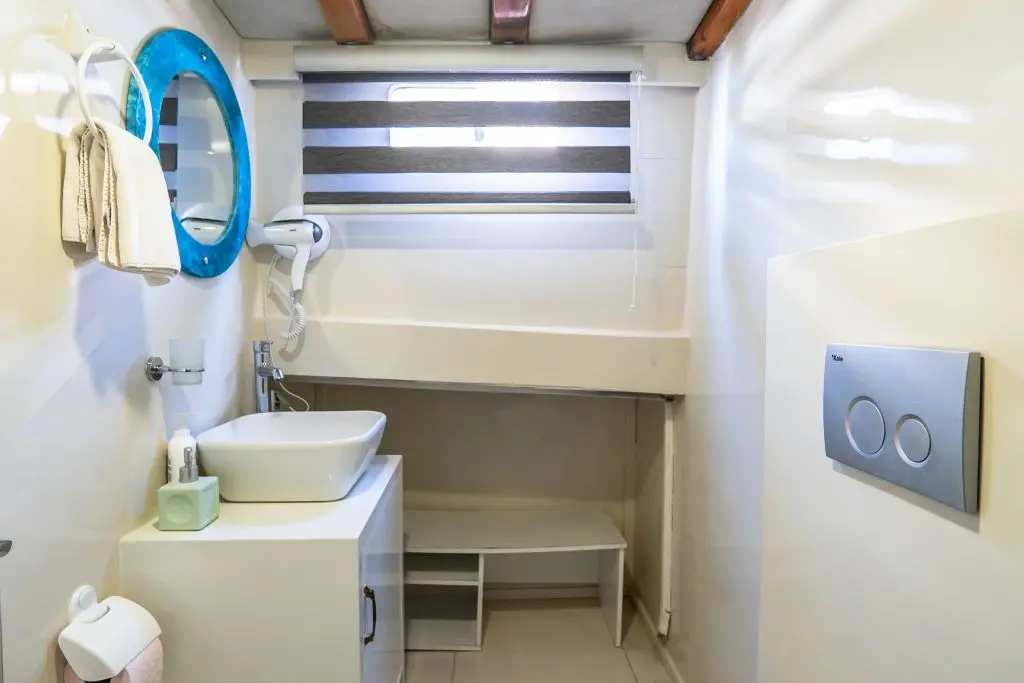 A dedicated crew of four, skilled in navigation and hospitality, is committed to providing guests with a seamless and personalized sailing experience, ensuring all needs are met with the highest standard of service. Onboard amenities include a TV in the salon, a music system, and wireless internet, alongside recreational equipment such as a canoe, offering guests various options for entertainment and relaxation.